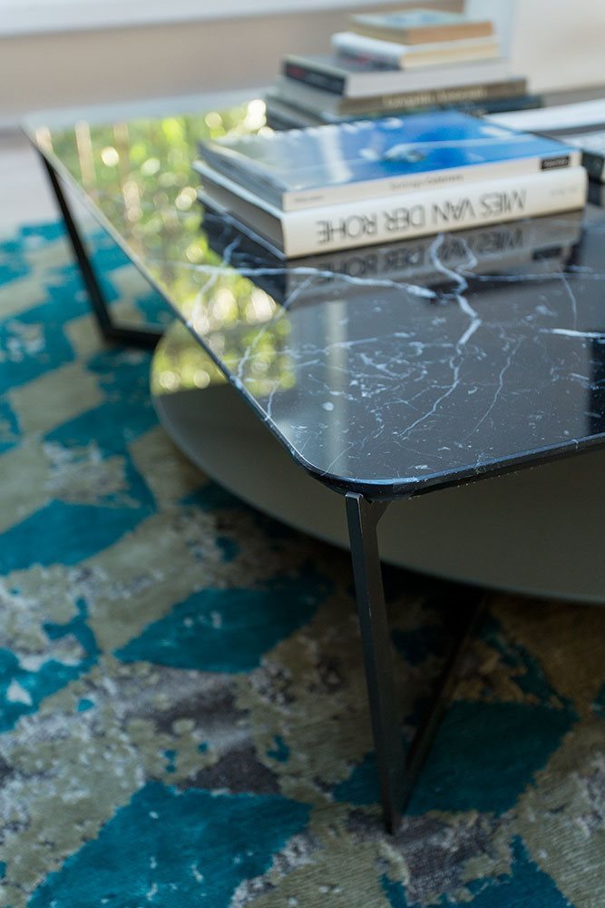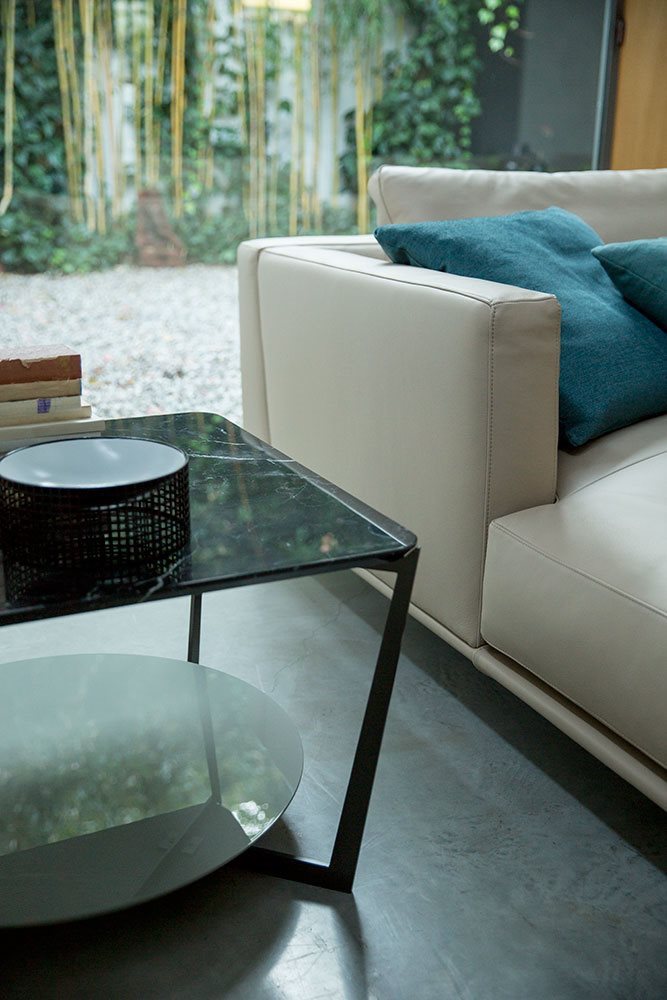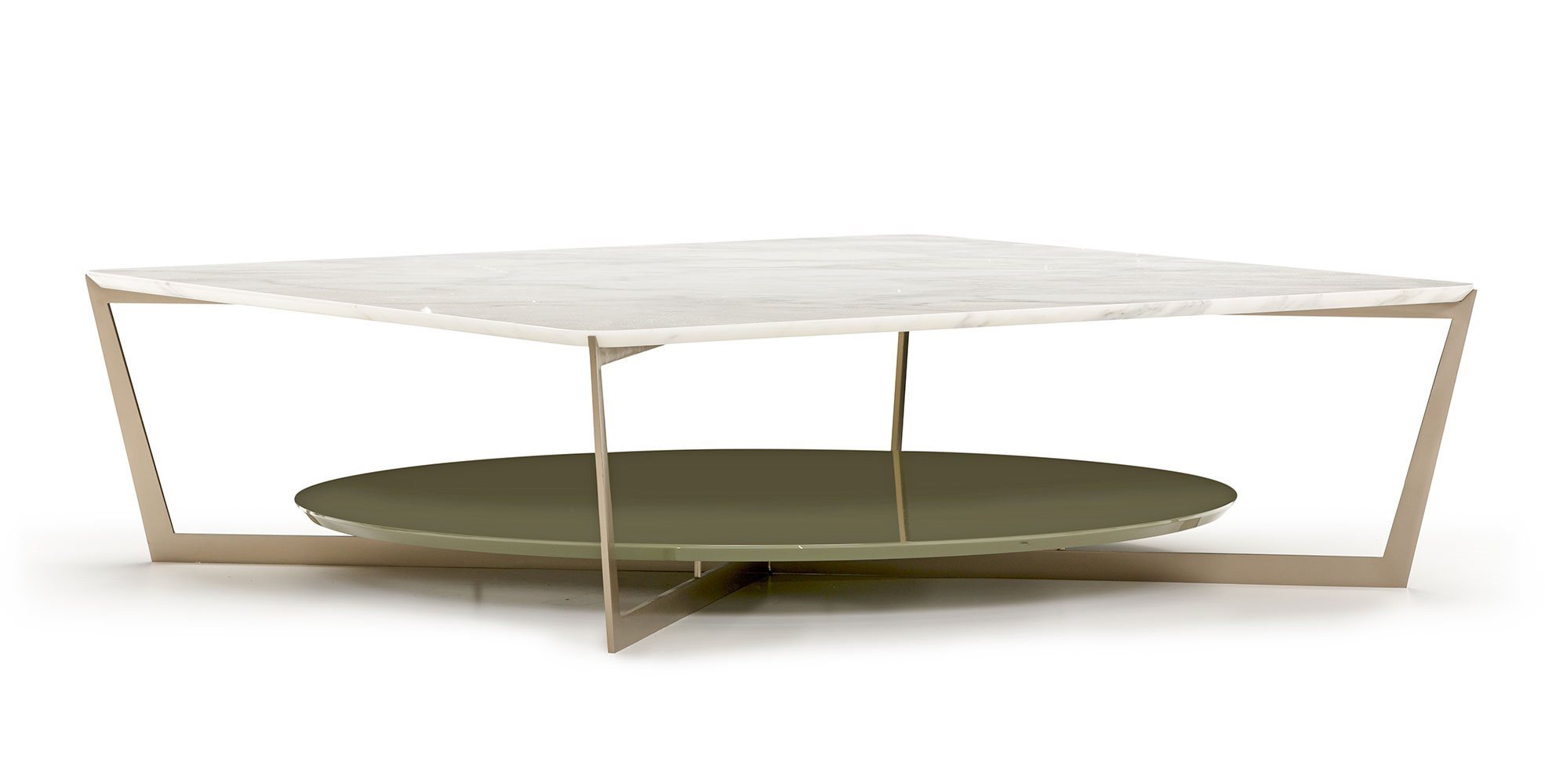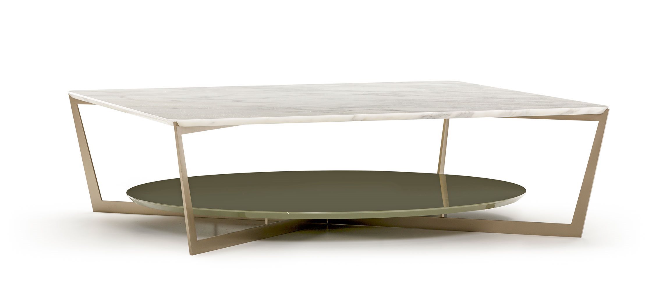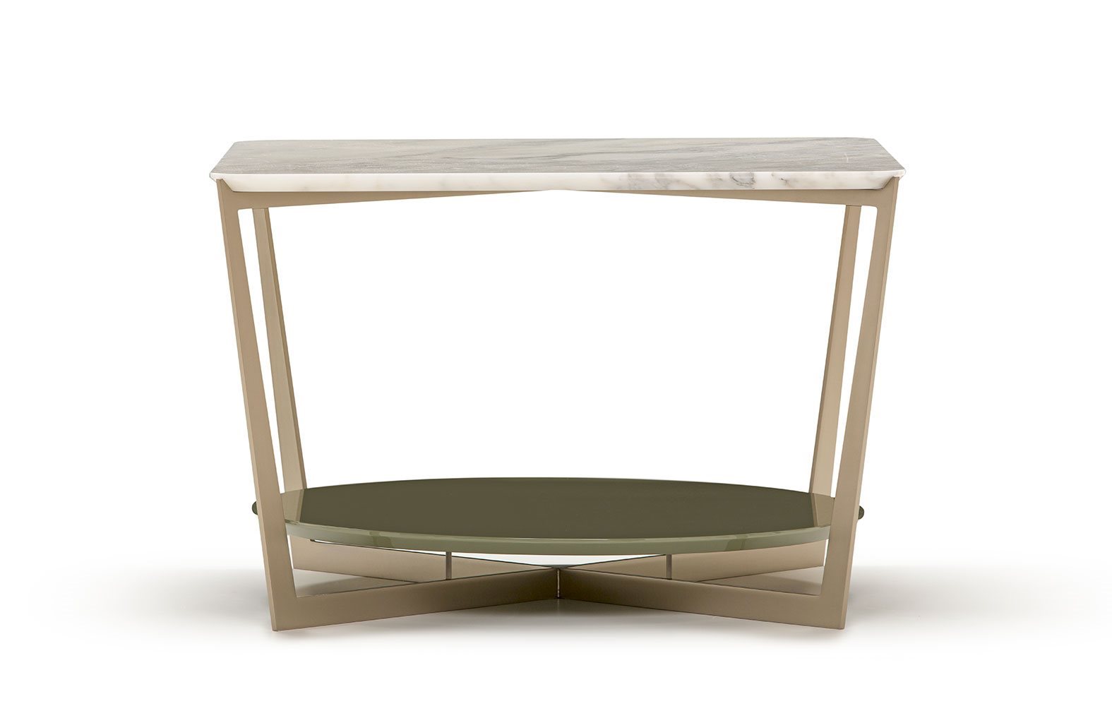 Small tables. Structure: in metal. Structure finishing: French Bronze or Gun Metal. Top high (1): marble. Top low (2): MDF. Top low finishing (2): lacquered.