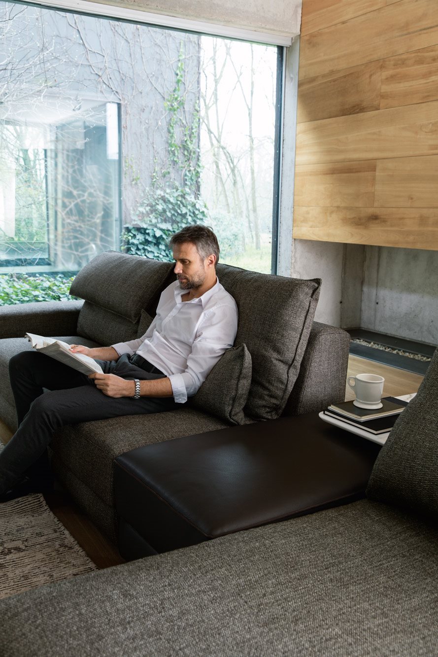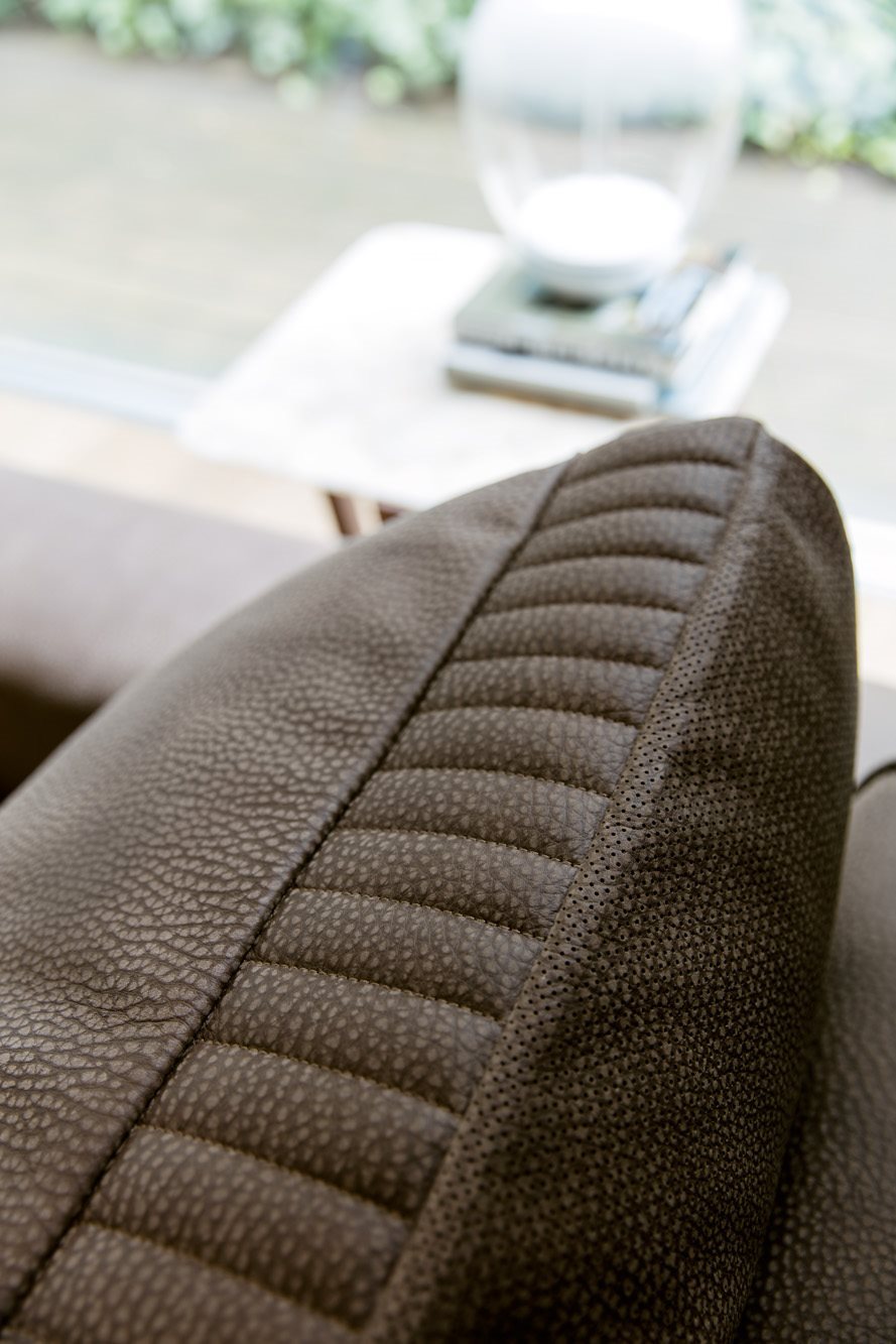The Game seating system combines an ordered and essential design with an enveloping softness and a unique level of personalization. An elegant quilting stitching, inspired by the world of leatherworking, divides the backrest cushion in two padded parts. The smaller part functions as lumbar support or head rest, depending on how the cushion is oriented: the user can create "his" ideal sofa, achieving maximum comfort in any situation, from relaxing to reading to conversation. The system also includes a hassock and elements with low backrests, which, when combined with the standard elements, create original and adaptable compositions for any space.