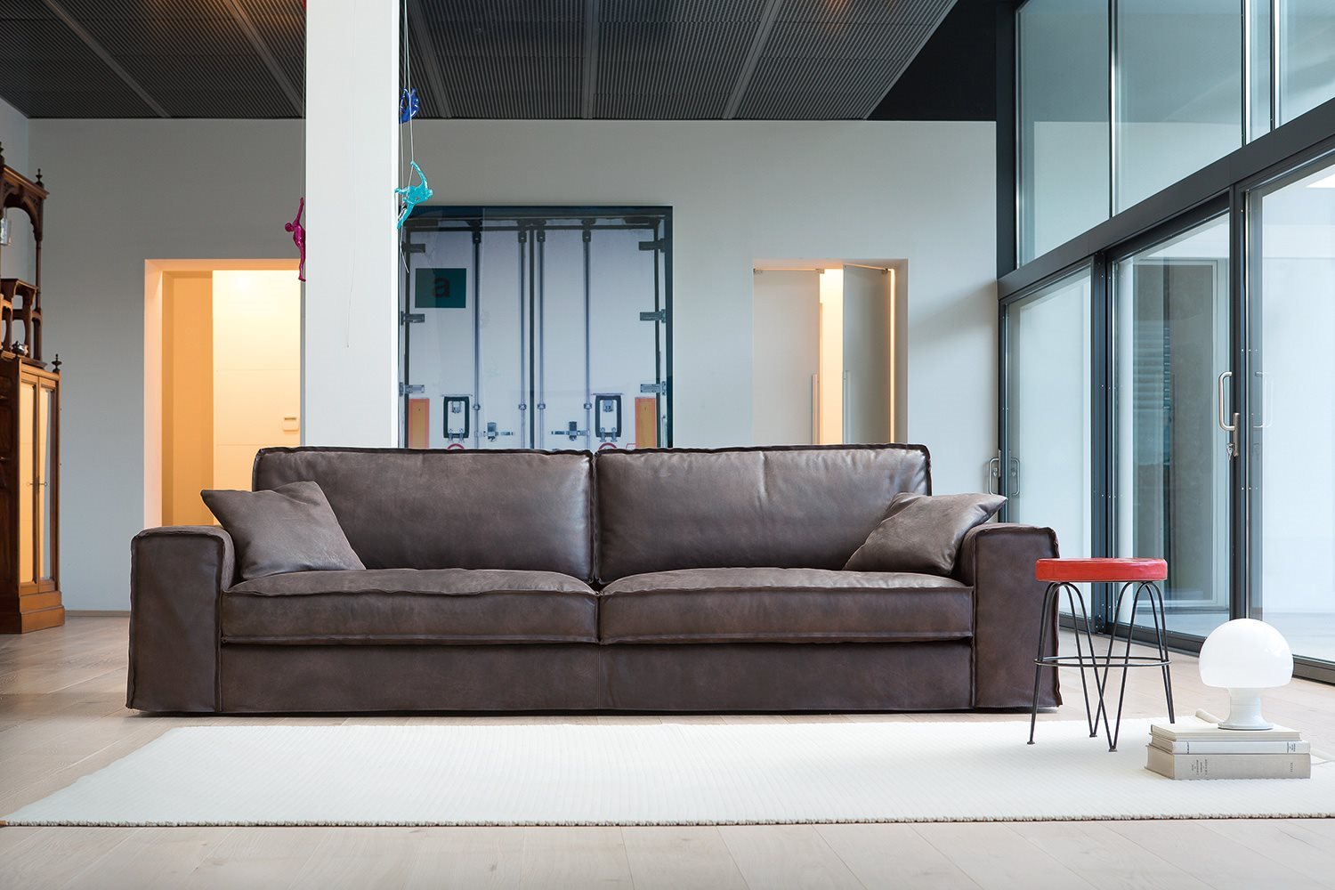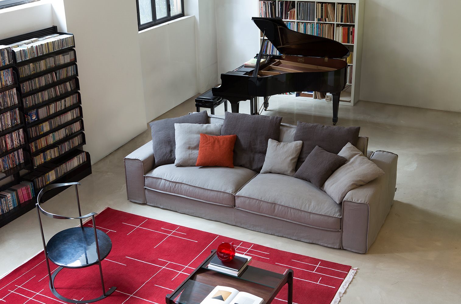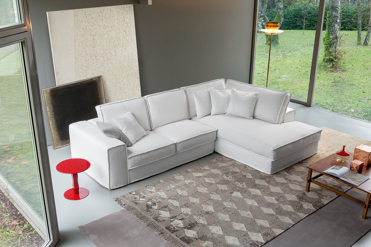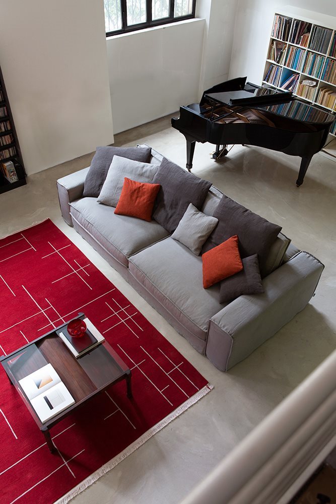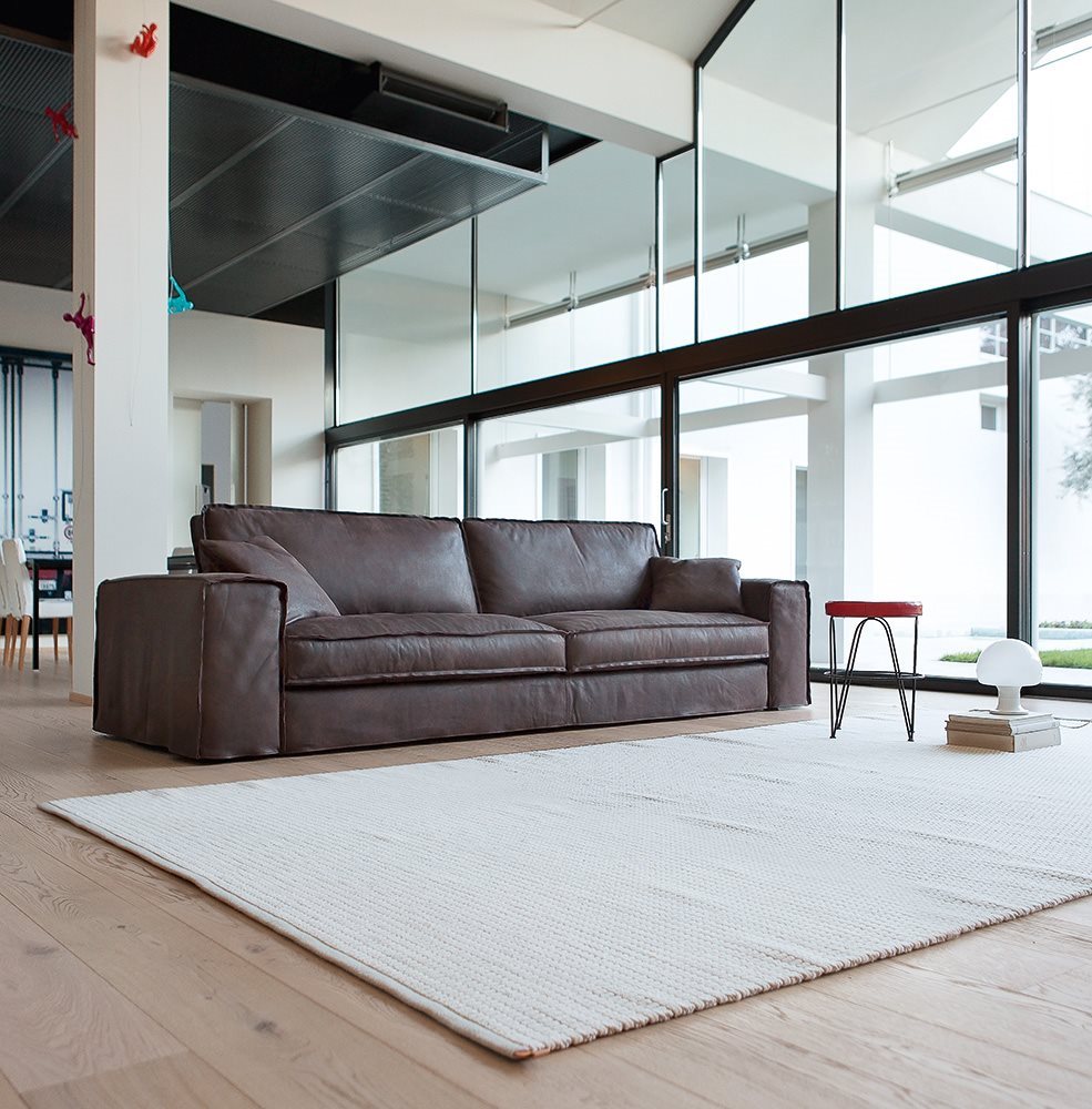 Fabric and leather covers. Model Santorini represents the modern evolution of the traditional sofa concept. Essential shapes are combined with the search for the maximum comfort; customization options thanks to backrest cushions of different sizes. Back cushion in polyurethane foam with upper part in goose feathers. Seat cushion in polyurethane foam with goose feathers and polyesther fiber padding. Chassis in polyurethane foam with different densities. The range of elements is very wide and includes sofas with two arms and sectional elements (also deeper elements). The sofas with standard depth can be equipped with electrically-welded spring and polyurethane foam mattress. These features gives the model a great versatility, making it suitable to satisfy the different needs of the users.