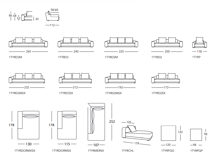 Rigorous design and attention to the details characterize the modular sofa TYRON. The model has a seat which expresses the maximum comfort in addition to a package worthy of a high fashion outfit.