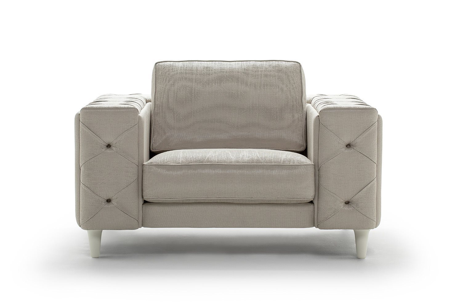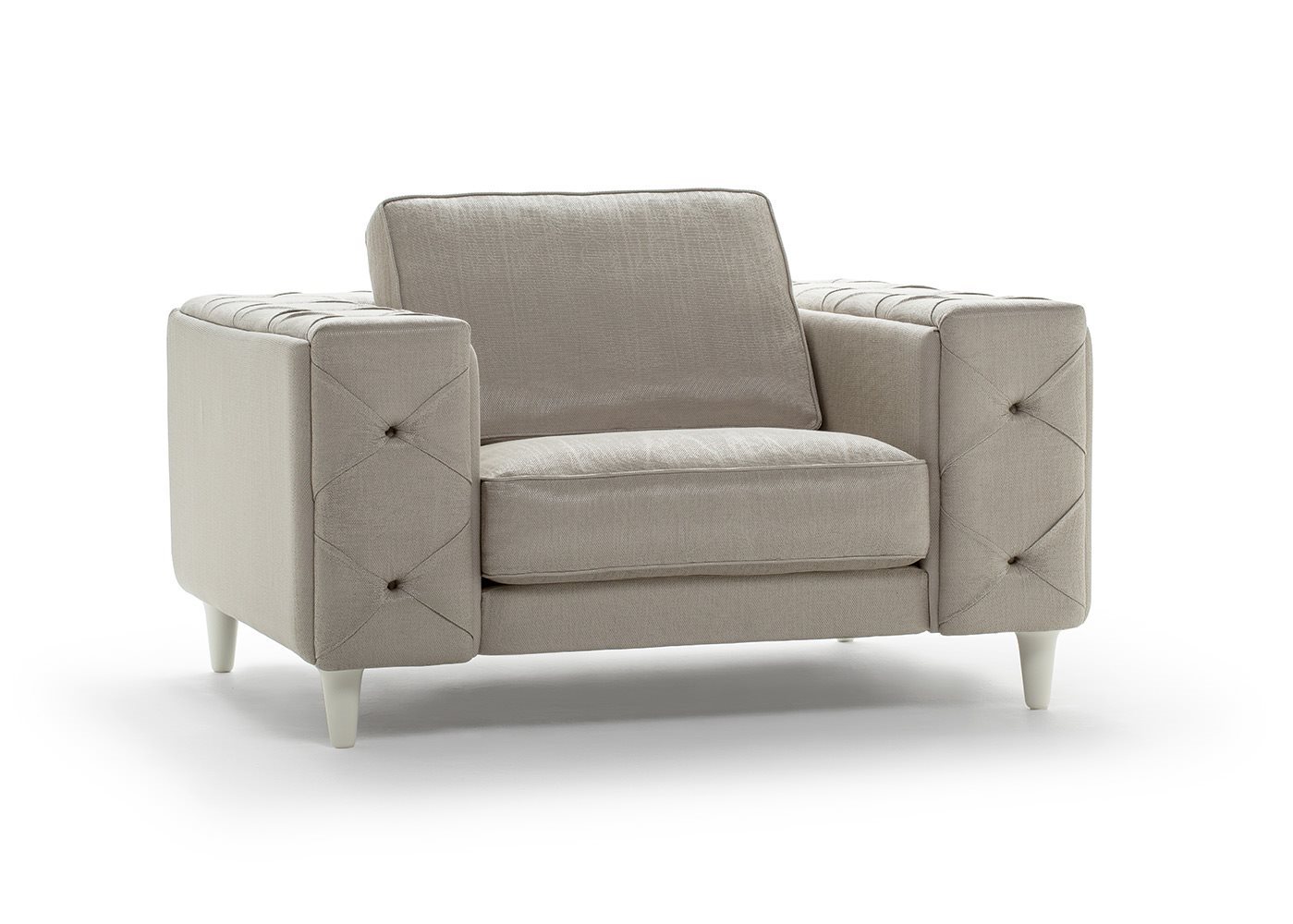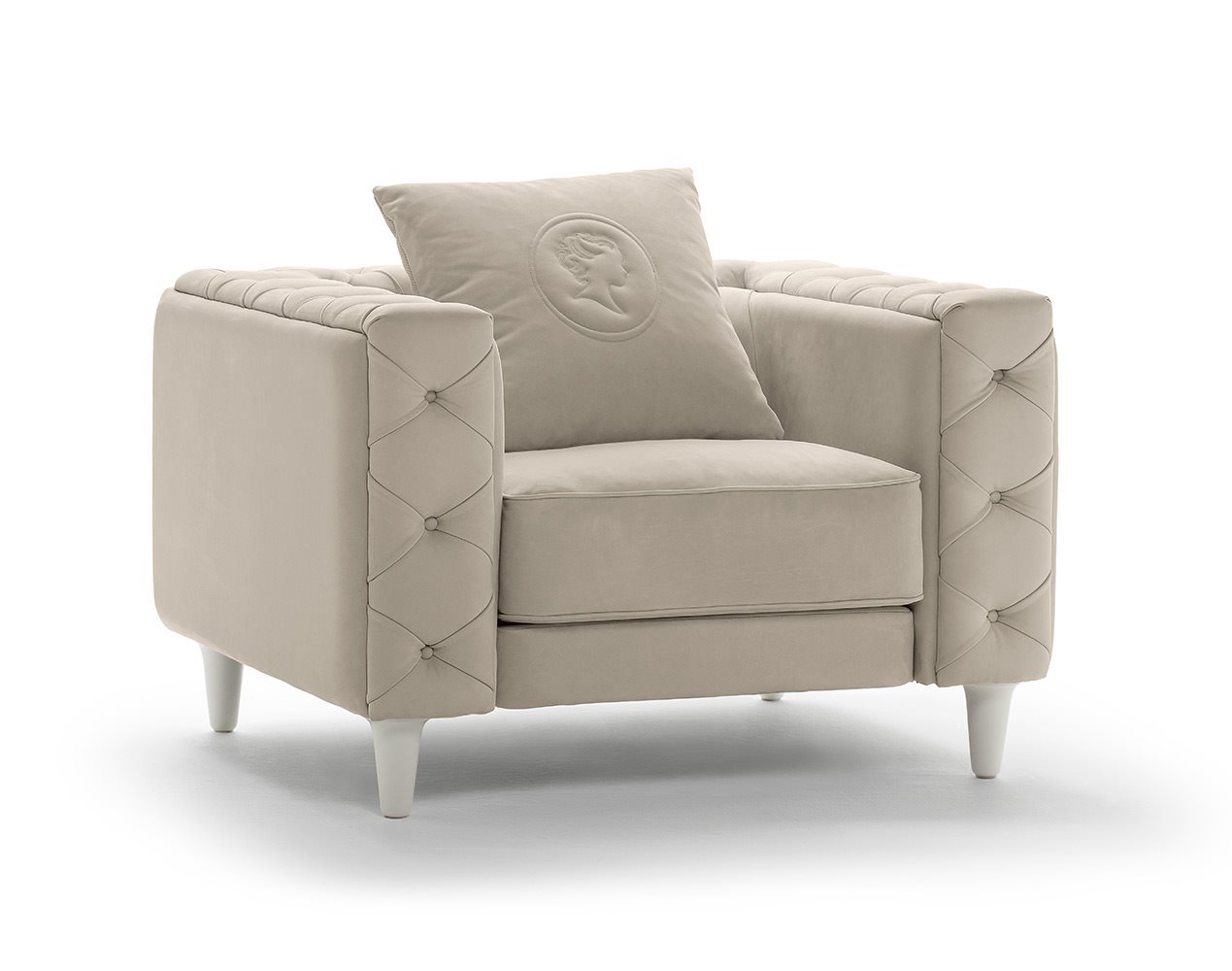 The Belmondo sofa is an example of unequalled luxury and charm. The precious appearance given by the crafted studded padding, and the modern lacquered feet create a highly impacting sofa, perfect for the more sophisticated interiors, either in the home or prestigious meeting rooms.