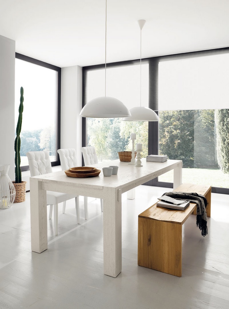 It is also proposed in Naturale finish, together with the Stoccolma table and Eco-Capitonne’ chairs, all in Bianco finish.