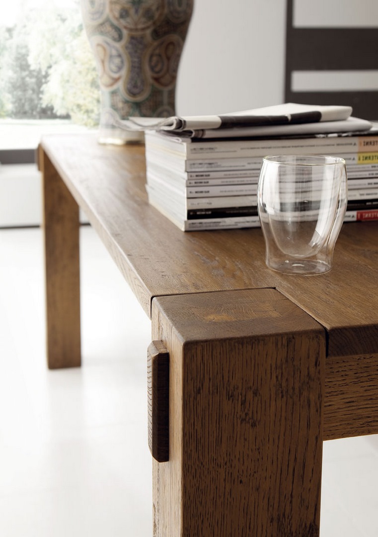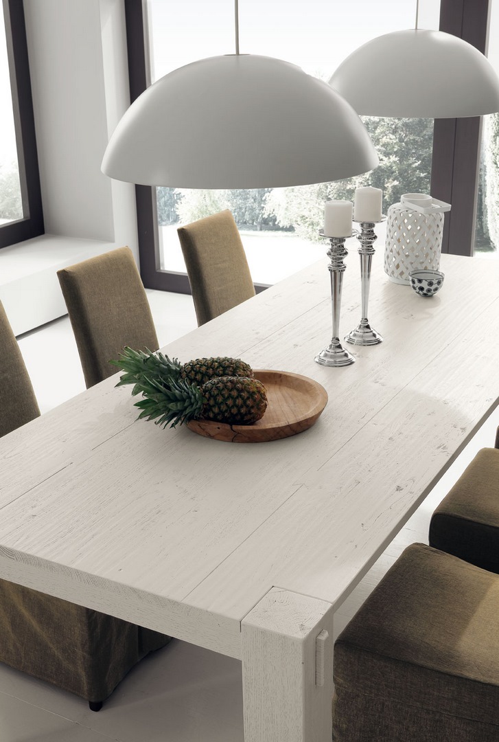 In the photos is also proposed in Oliva finish; with chairs Eco.