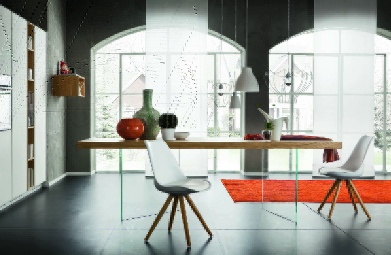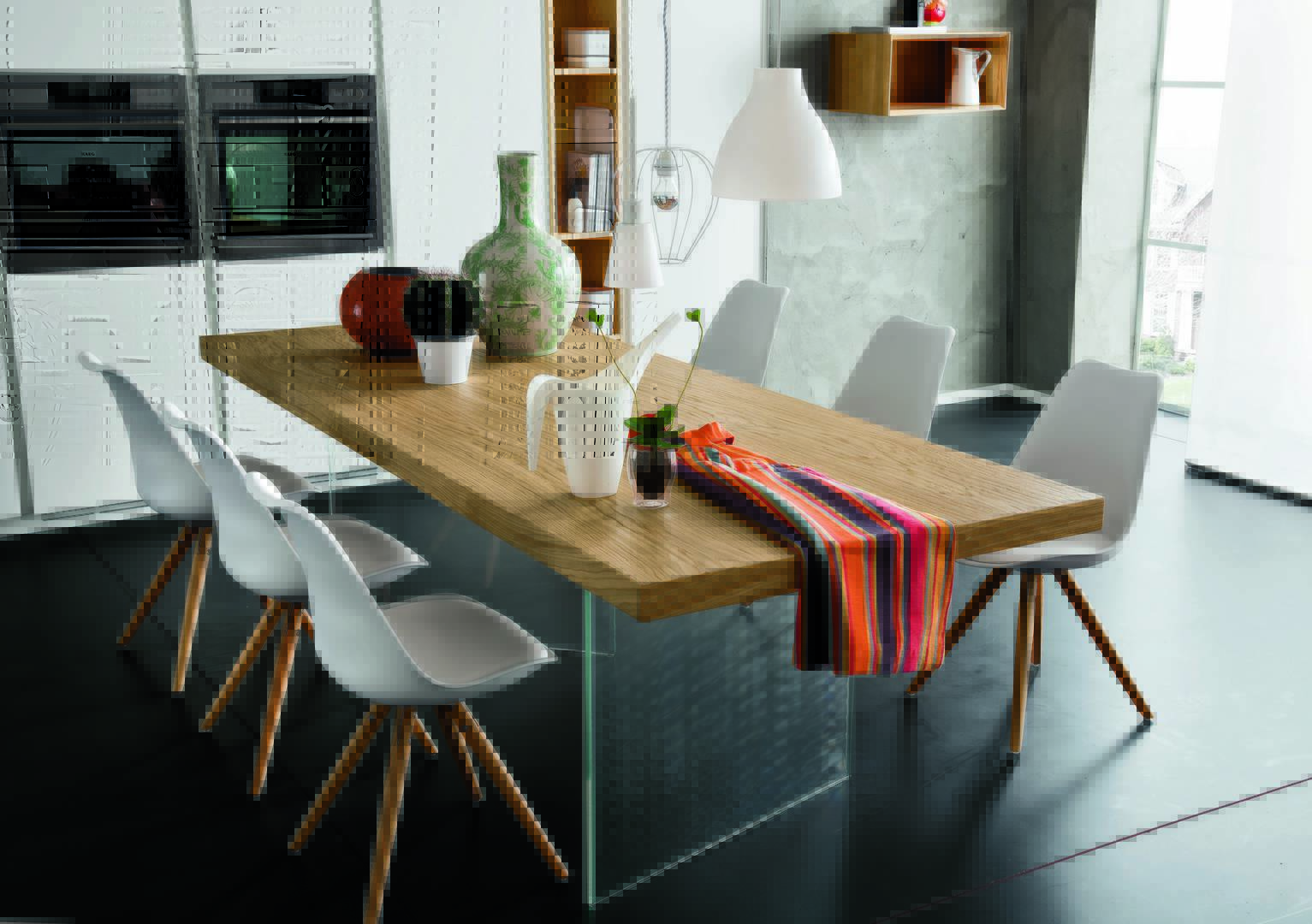 Nizza table made of 64-mm thick top with a multilayer core, covered with 30/10 extra-thick European oak veneer on the top; in Naturale finish.