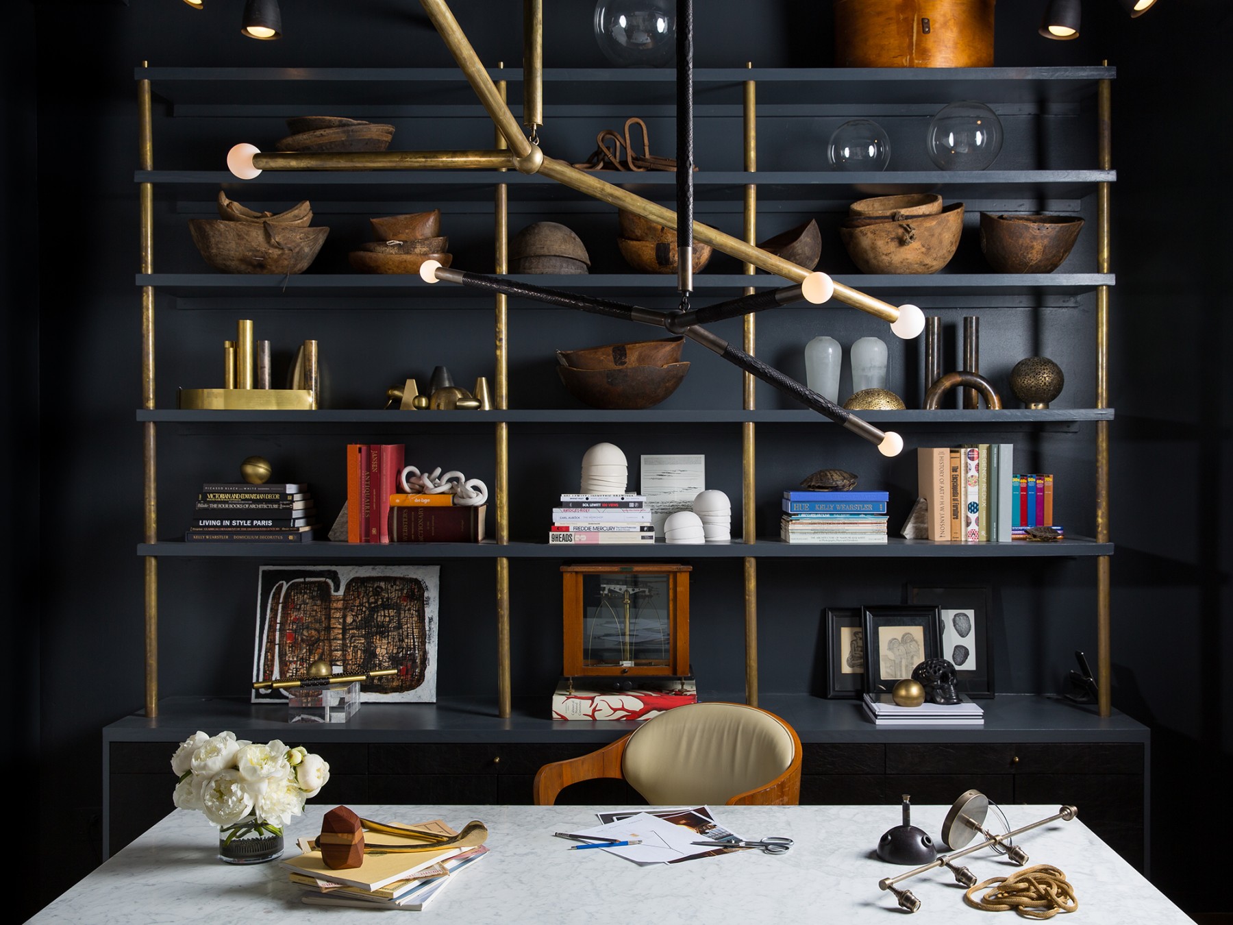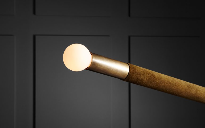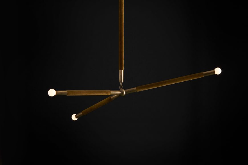THE REPRESENTATION OF AN ARROW IN ITS SIMPLEST FORM: A LINE SEGMENT WITH A TRIANGLE AFFIXED TO ONE END. THE TRAJECTORY OF THE ARROW IS DETERMINED BY WEIGHTS THAT REMAIN HIDDEN WITHIN THE FIXTURE. BRASS WITH OPTIONAL HAND-WRAPPED LEATHER OR SUEDE DETAIL.