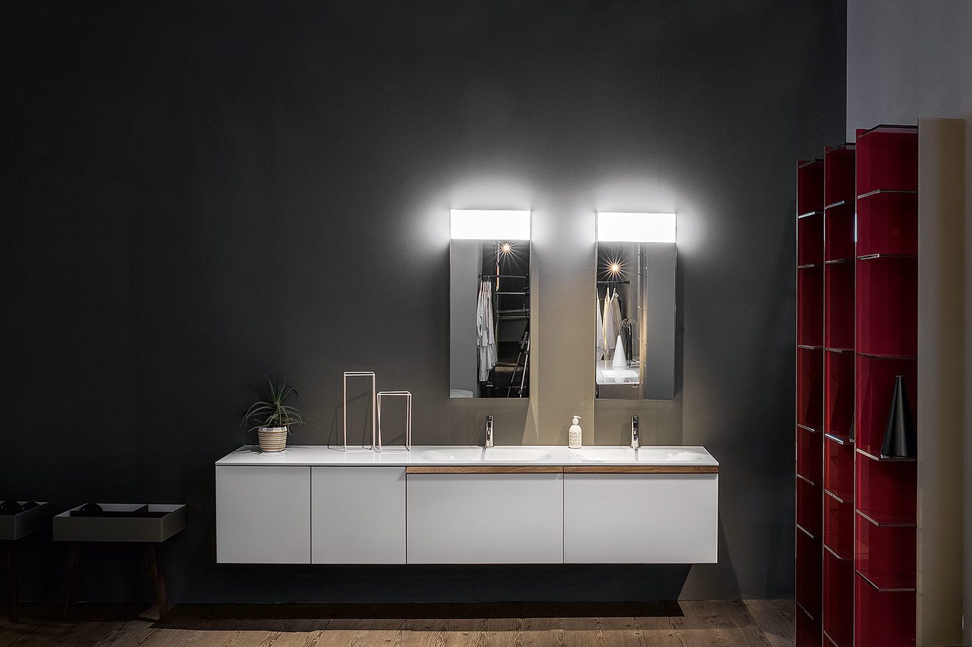 Riga è il parallelepipedo rigoroso reso dinamico dalla maniglia. Verticale ed orizzontale, in vetro colorato o legno, la nuova maniglia è l’elemento distintivo di una collezione che resta fedele alla tradizione Artelinea nella ricerca di versatilità ed estrema componibilità.
