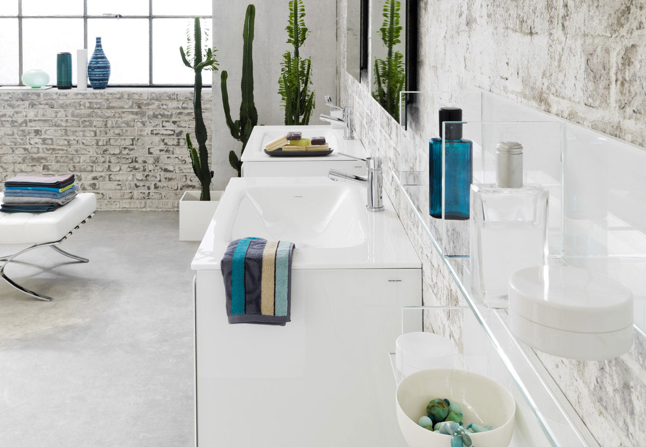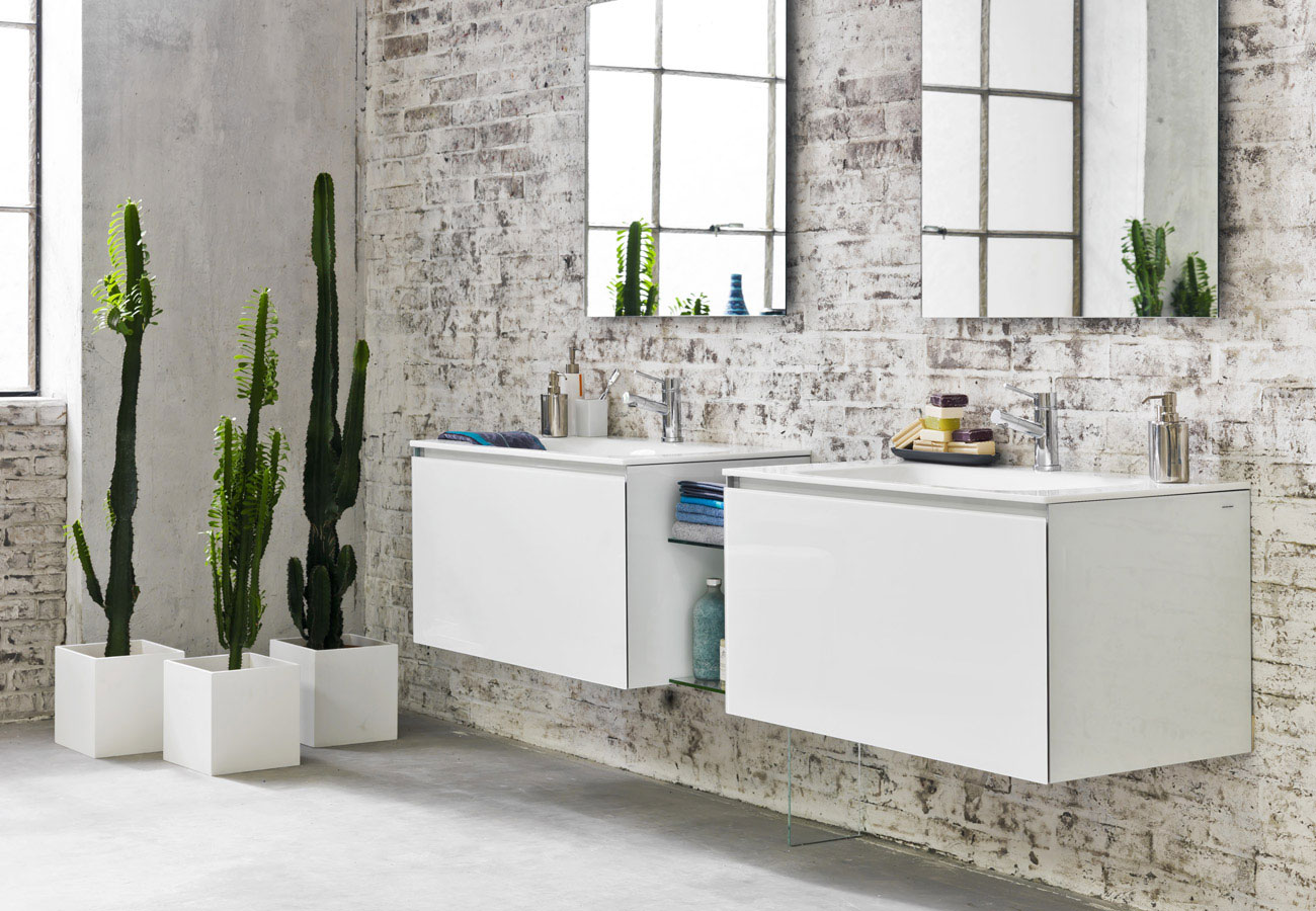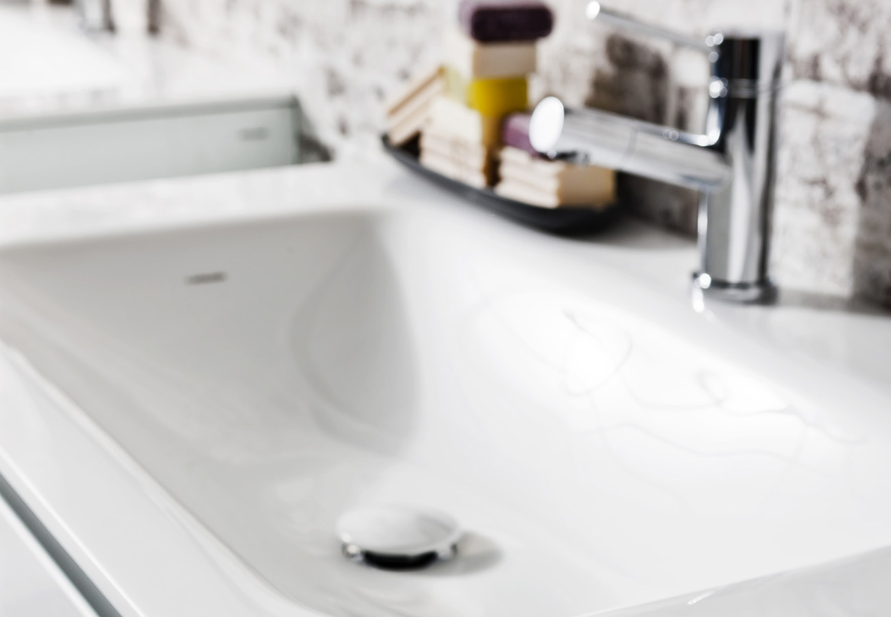 Per questa collezione è stato pensato un lavabo integrato dalla fusione particolare che permette di sfruttare al meglio tutta la profondità del mobile e di poter usufruire di miscelatori sia da appoggio che a muro.