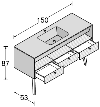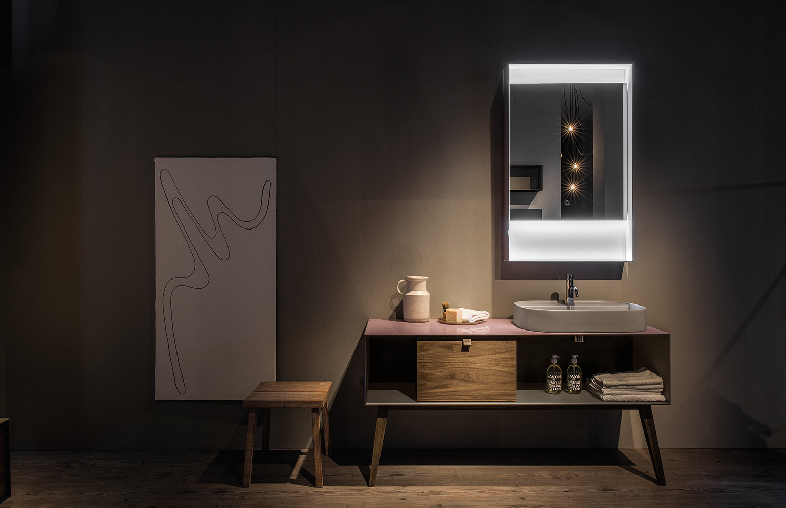 La razionalità del disegno del monoblocco è sdrammatizzata sia dalla componibilità interna data dai cassetti e dai vani a giorno, posizionabili liberamente all’interno dello spazio, sia dalla possibilità di abbinare colori diversi, grazie a Dualite.