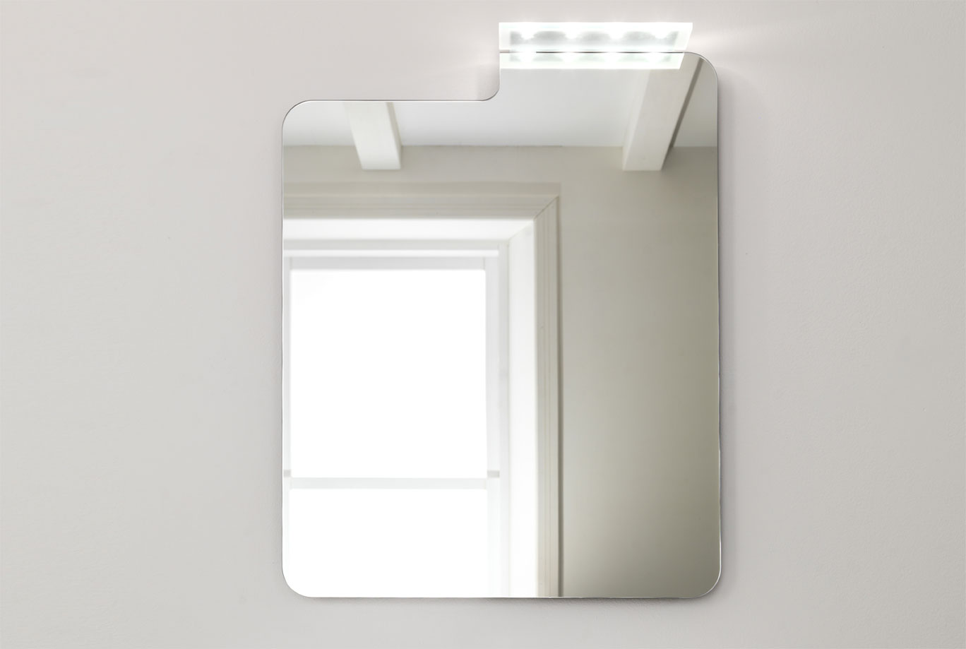 Specchio 5 mm filo toro con angoli stondati, trasfomatore 220/12V completo di telaio.