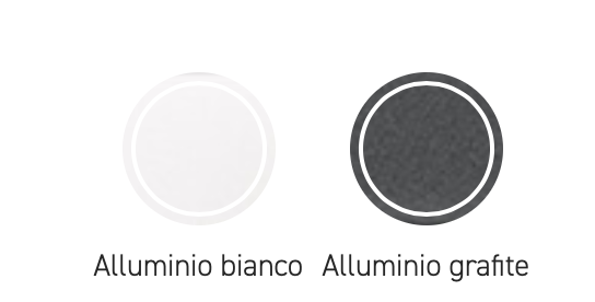 Telaio in alluminio verniciato grigio o bianco. Tessuto acrilico gr. 320 in colore bianco o ecrù. Completo di soffietto antivento, apertura a carrucola, corone in resina.