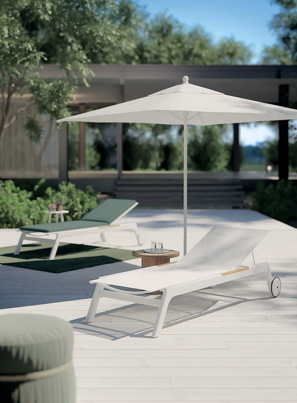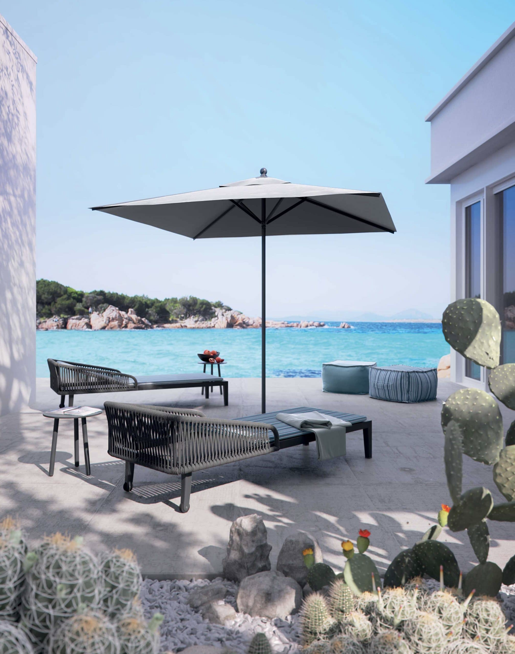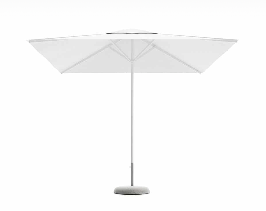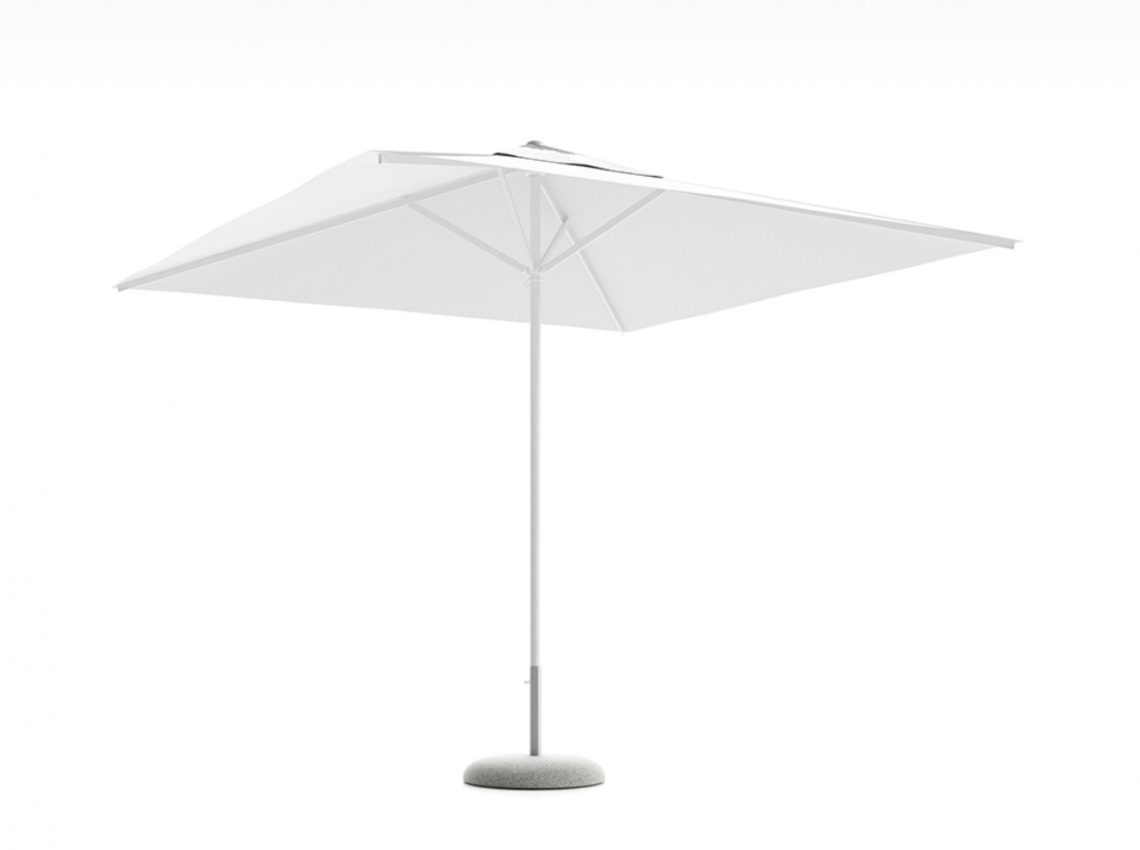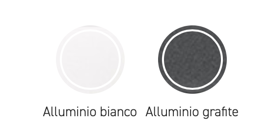 Telaio in alluminio verniciato grigio o bianco. Tessuto acrilico gr. 320 in colore bianco o ecrù. Completo di soffietto antivento, apertura a carrucola, corone in resina.