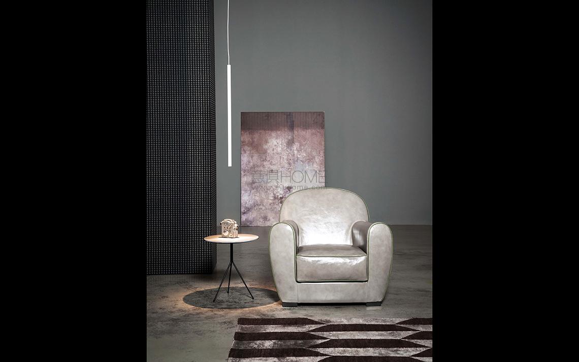 The Amburgo Baby armchair, designed by Paola Navone for Baxter, features a rounded, reassuring design that recalls the classic ideal of the home armchair. The curved shape of the accessory forms an extra-comfortable upholstered seat with wide armrests and an enveloping backrest that seems to want to embrace the sitter, encircling them in a comfortable and secure embrace. Featuring a compact, neat size, this rounded armchair is enhanced by the original decorative profile in contrasting or tone-on-tone leather, which further enhances its curved, soft design.