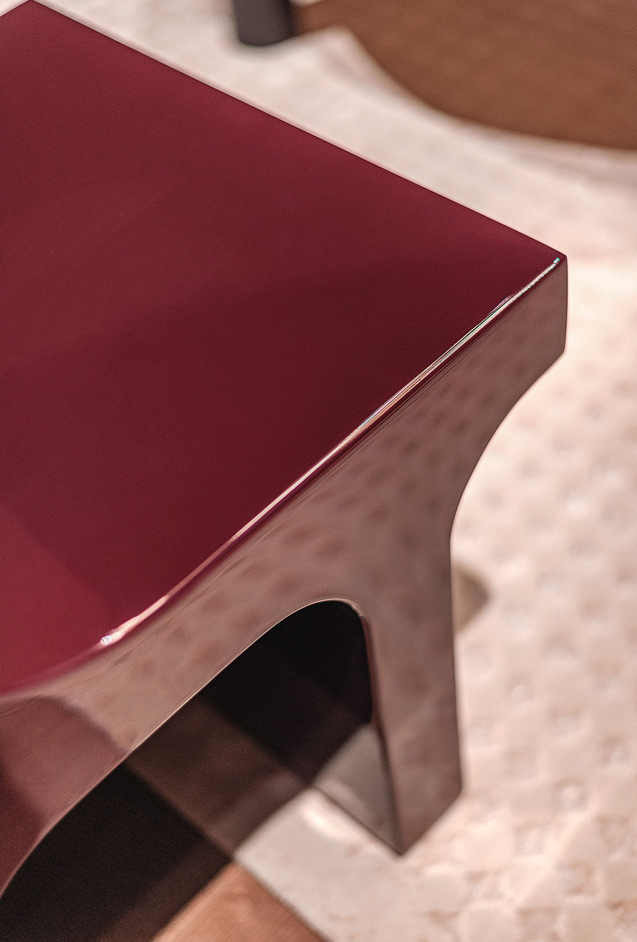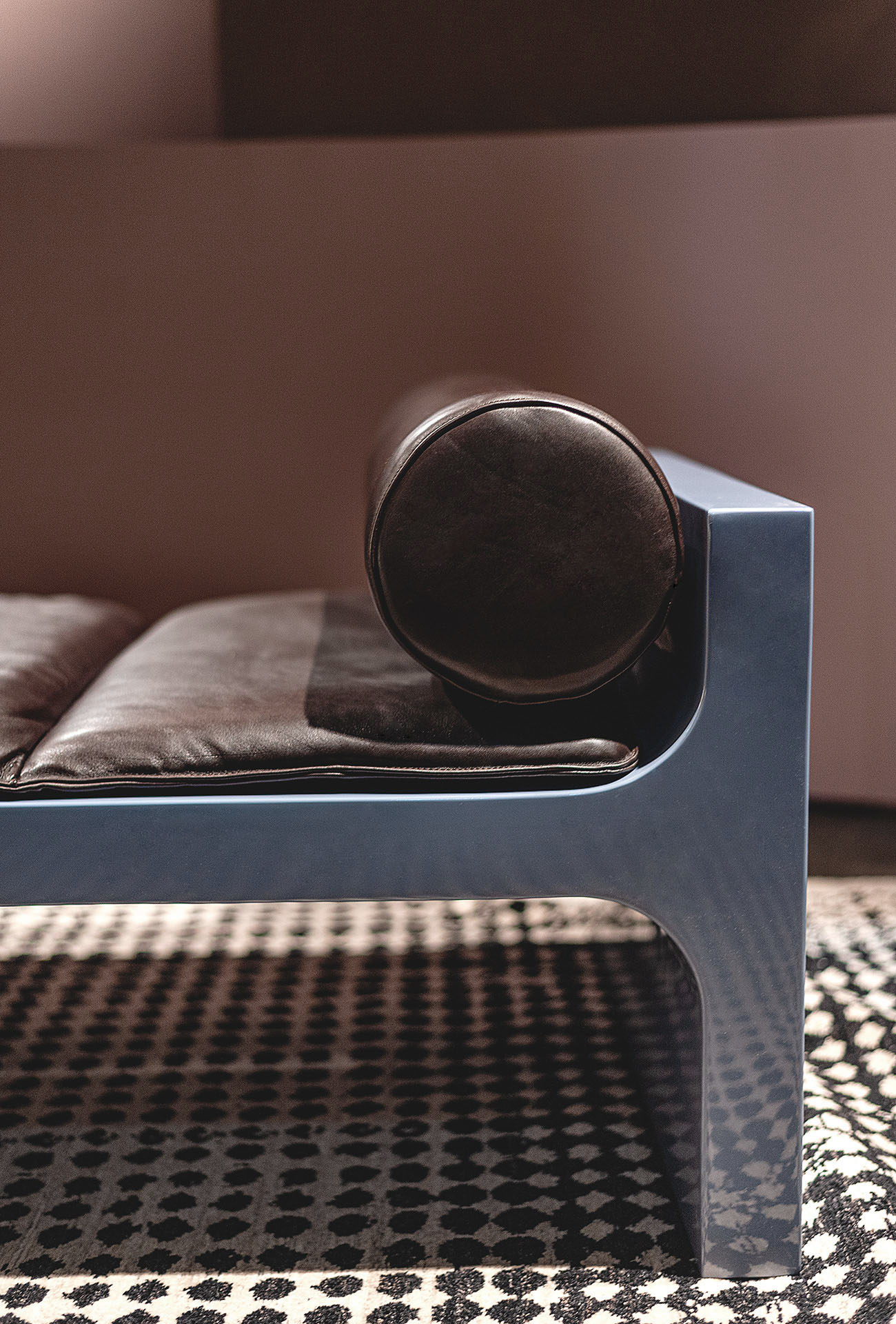Stool, armchair, bench and lounger, in lacquered finishes, sparkle with glossy reflections and permeate the outdoors with a diversity that one immediately wants to get close to. The colour palette is borrowed from the pop, bourgeois, vibrant canvases of neatly composed life painted by David Hockney. To reassure us and give us a comfortable place to sit, they can be accessorised with cushions and mattresses in leather or fabric in a wide range of variants also designed for outdoor use, the great Baxter classics.