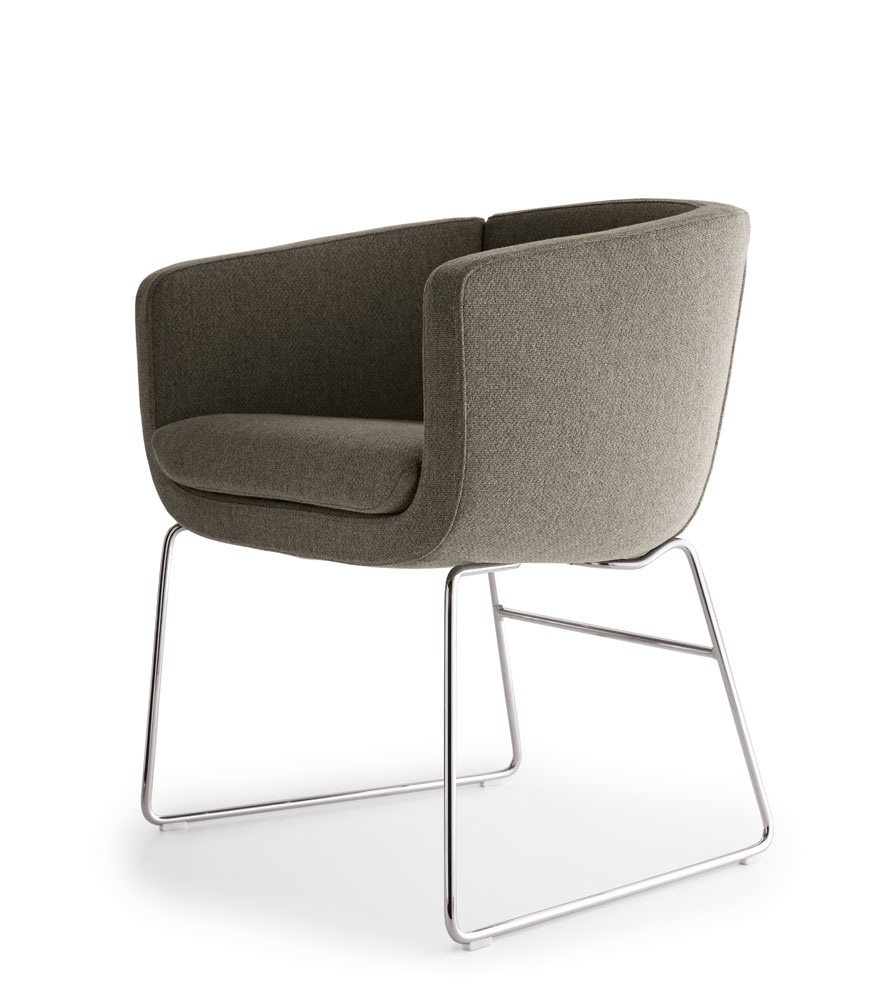 Tulip是一款可360°轉動的扶手椅,有著多樣化的用途。它的特點在于其厚實度與直線曲線交互之間的完美平衡。采用拋亮光鋁制成的支撐盤展現了部分的框架,從而突出了該產品的渾圓感。它的靠背上有兩道切口,而一個柔軟的座墊讓這款椅子顯得溫馨又舒適。