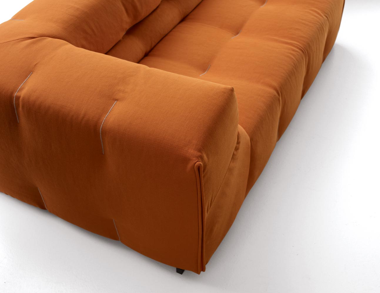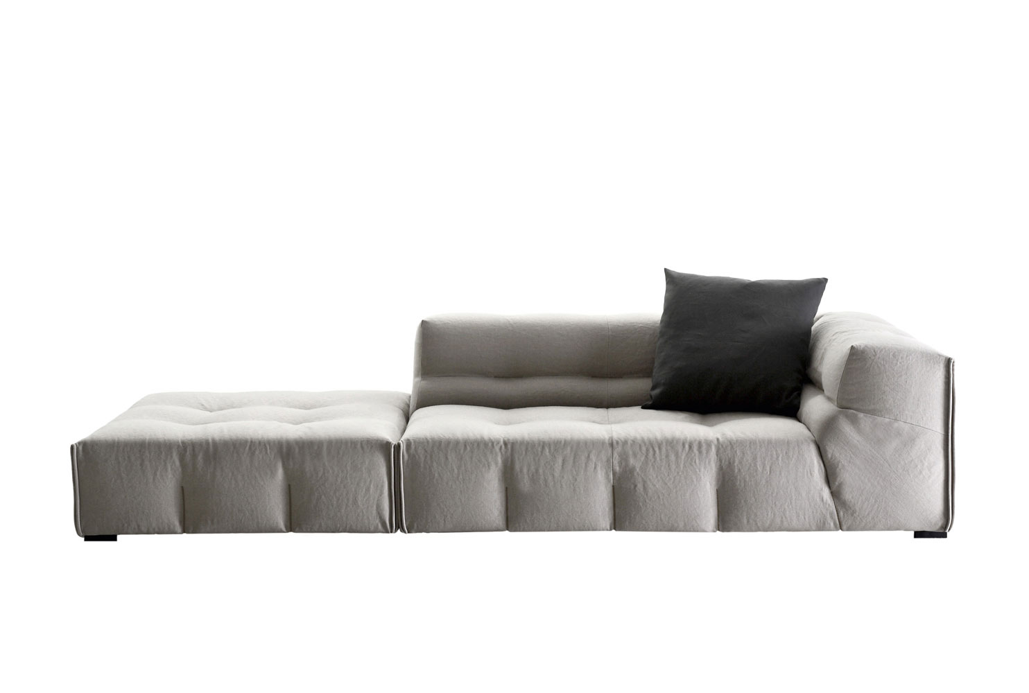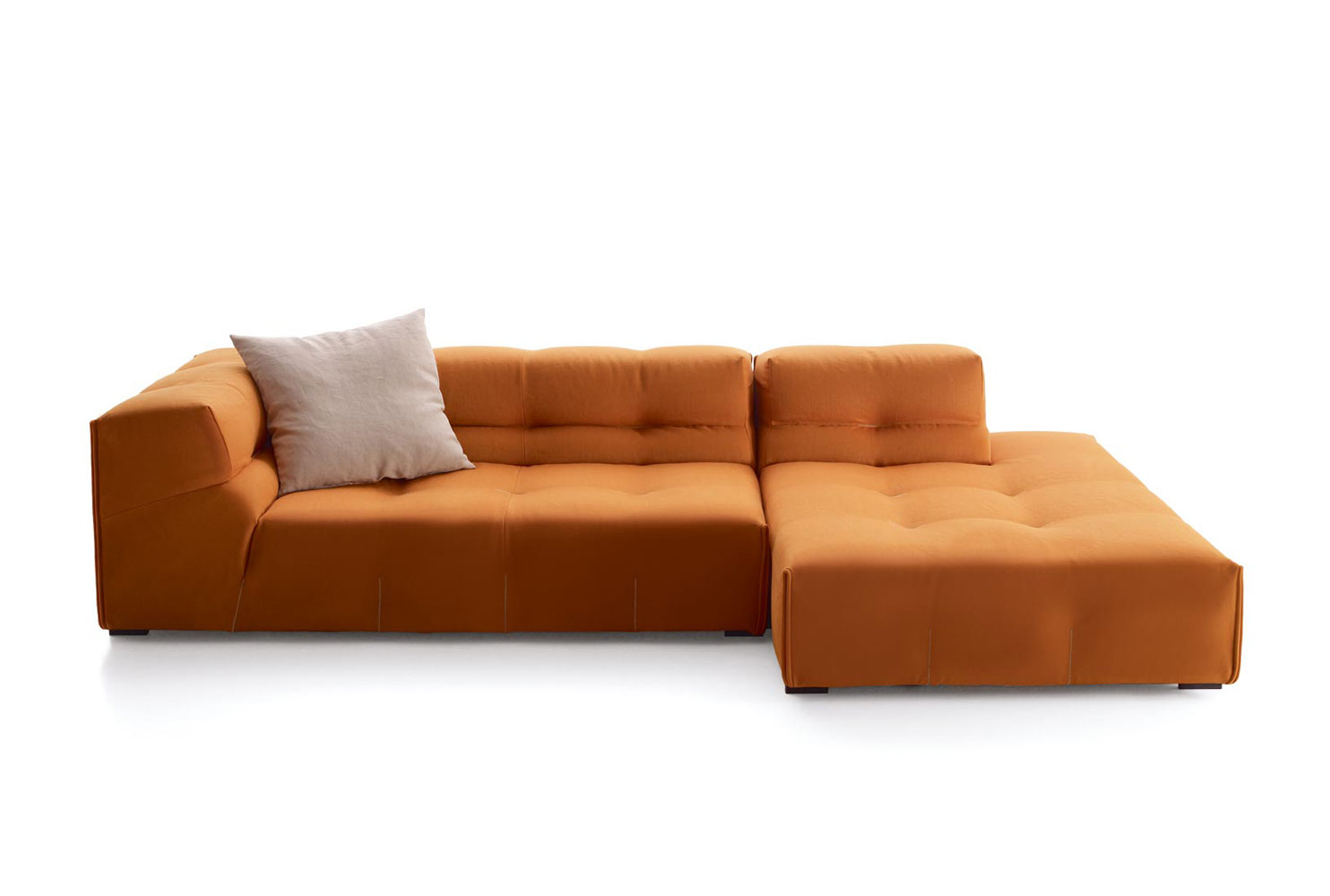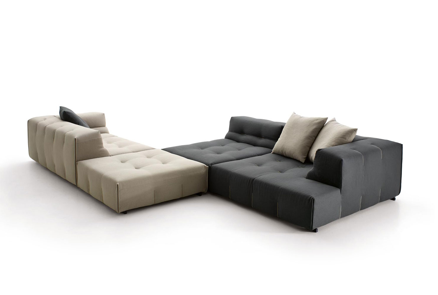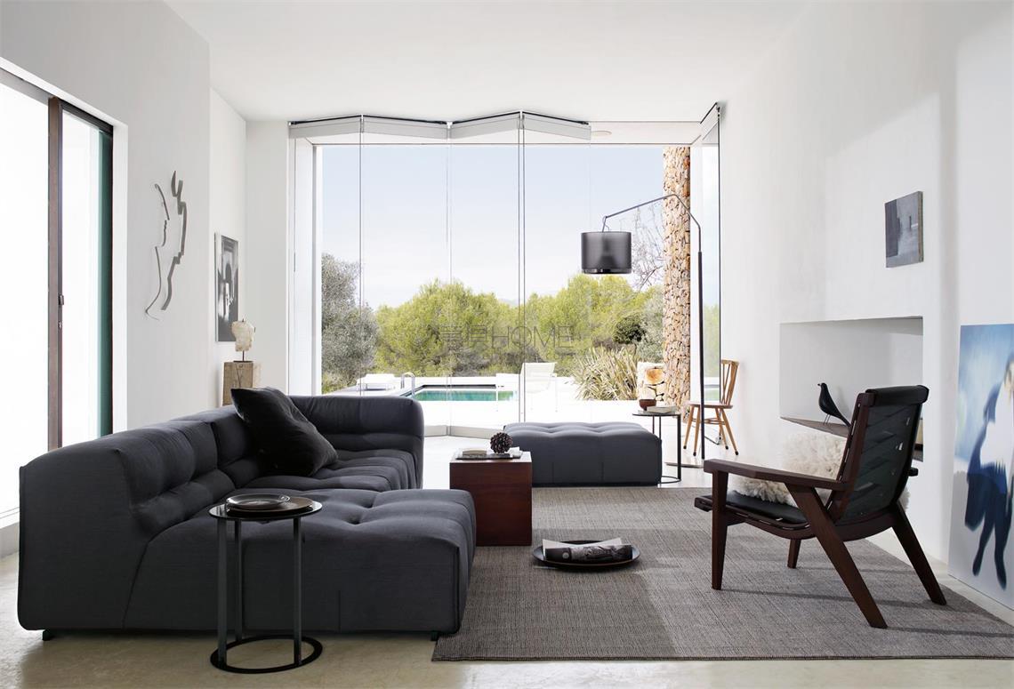 這是Tufty-Time系統(tǒng)的發(fā)展,圖片傳遞出了一種可以想象到的柔軟感受,還有基于定制飾面的裝飾的品質(zhì)。手工皮革釘扣風格的引用使得該系列顯得與眾不同。這種風格存在于沙發(fā)套相互匹配或呈現(xiàn)出對比色調(diào)中,這使其成為一個顯著的特色。它完好地保存了模塊化的特色并采用現(xiàn)代語言,使其對1960年代的借鑒更加純熟,這更加突出了該系列中的主打產(chǎn)品特點。