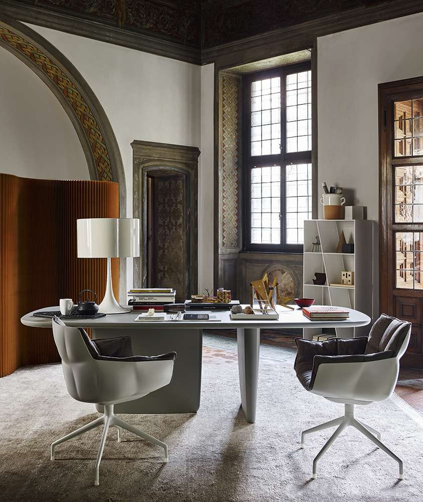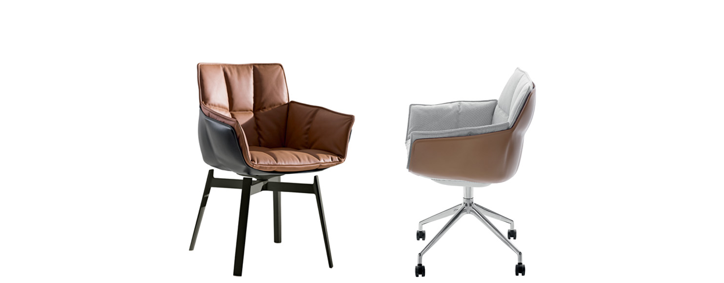 這款椅子十分舒適并以現(xiàn)代方式將底座和座椅相結合,采用了同名扶手椅的輪廓。主體部分的設計借鑒了手工皮質(zhì)釘扣(capitonné)的手法,傳達出一種柔軟的感覺;用按扣固定的織物或皮革靠包因其縫紉手法而顯得與眾不同。同時,它還有多種顏色和組合。