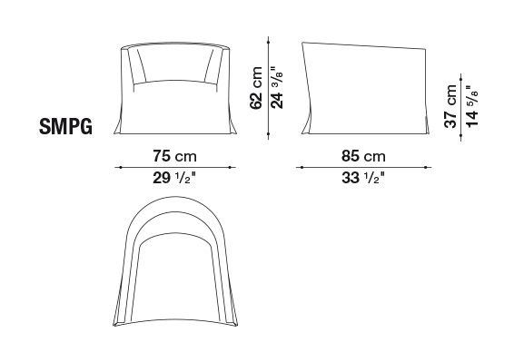 半圓弧形的造型讓這款沙發(fā)在三個寬度上(in three widths)別具特色,尤其適合擺放在房間中央。帶有銀灰色涂層鋼制旋轉底座框架的扶手椅也采用了這種弧形,使其可以安置在任何環(huán)境中,無論是起居室、書房還是臥室。