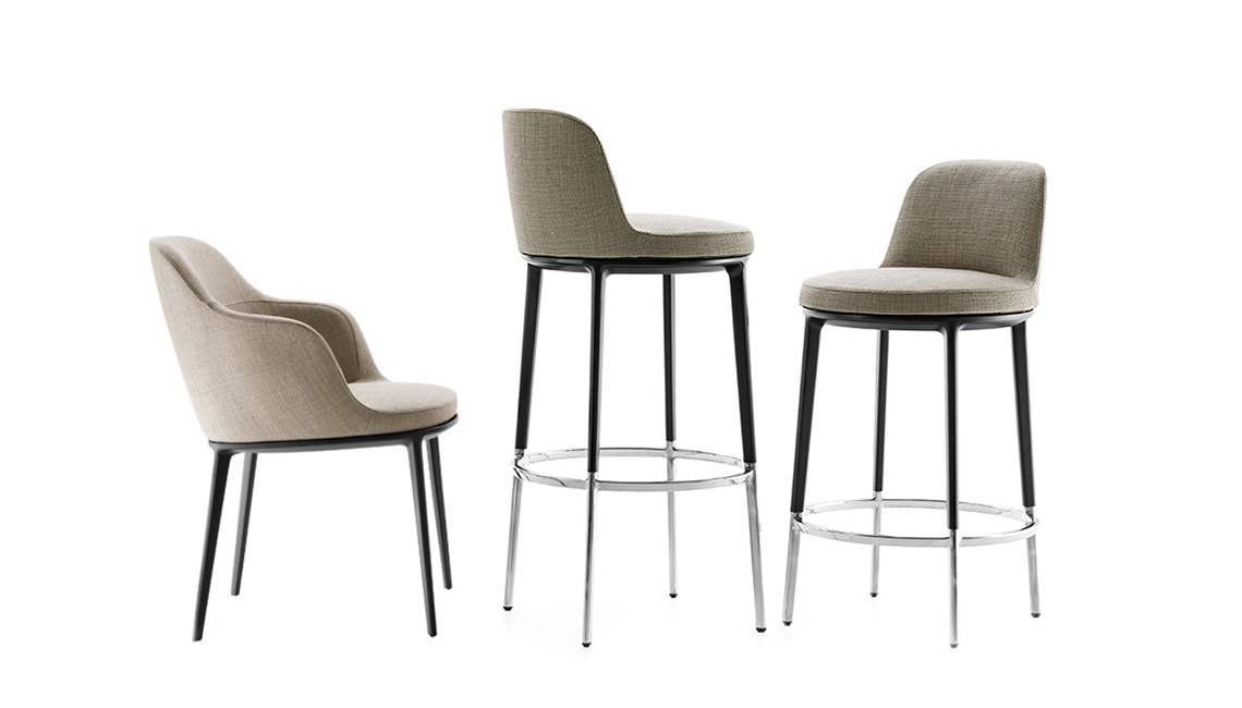 Caratos系列不斷成長并發展 —— 為多樣化的家居環境提供豐富的創意。 每件產品都擁有高識別度的壓鑄鋁基座。 除了2017年推出的椅子和扶手椅外,Caratos系列還有帶扶手的小扶手椅,扶手椅,浴盆扶手椅,兩個帶旋轉座椅的凳子,一張長凳,一個擱腳凳和一張咖啡桌。 石墨和琥珀金屬結構配有藍色,紫紅色和奶白色裝飾,與針織表面相得益彰。 值得注意的是,產品采用了一種如同“泰迪熊”般柔軟的絨毛 。 憑借這一新系列,Caratos可以說是一組靈活多變的產品,將在未來帶來新的驚喜。