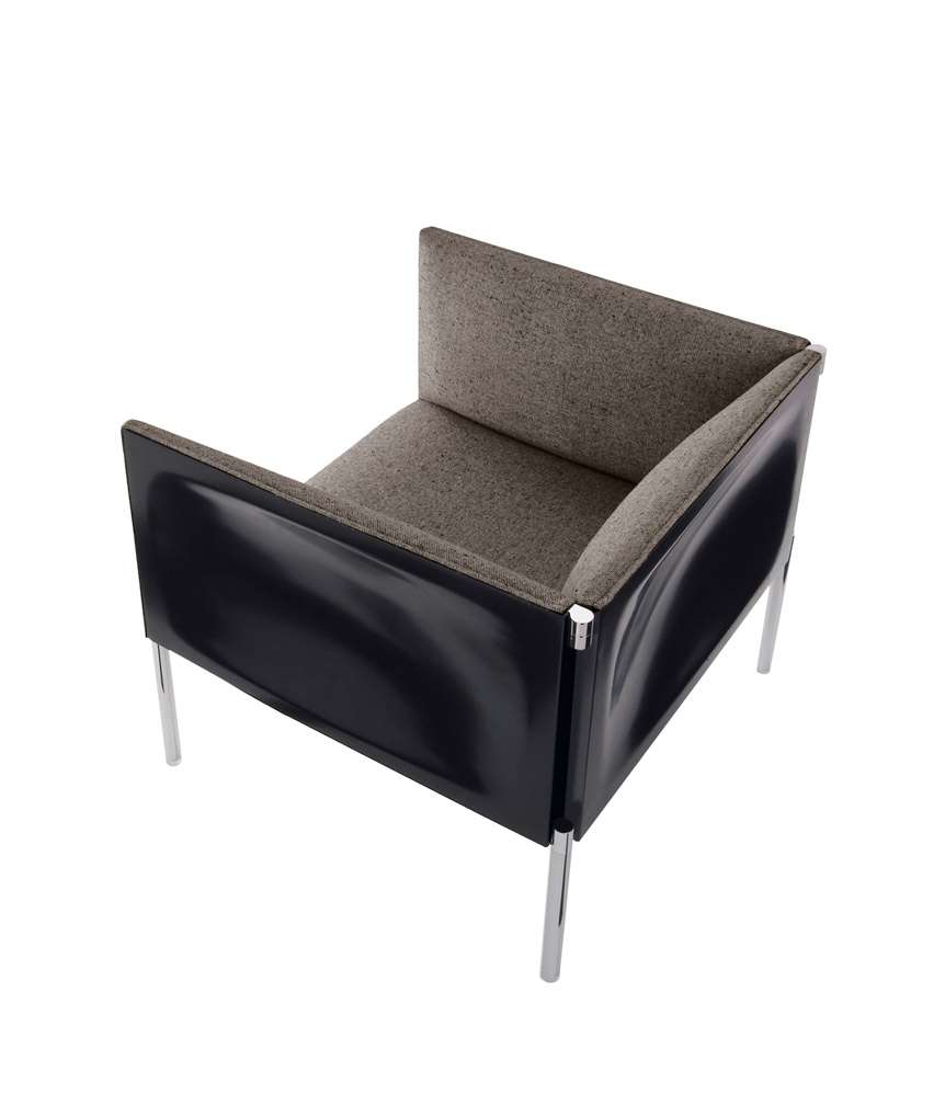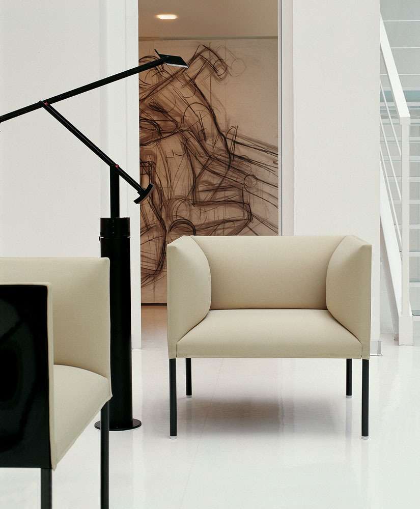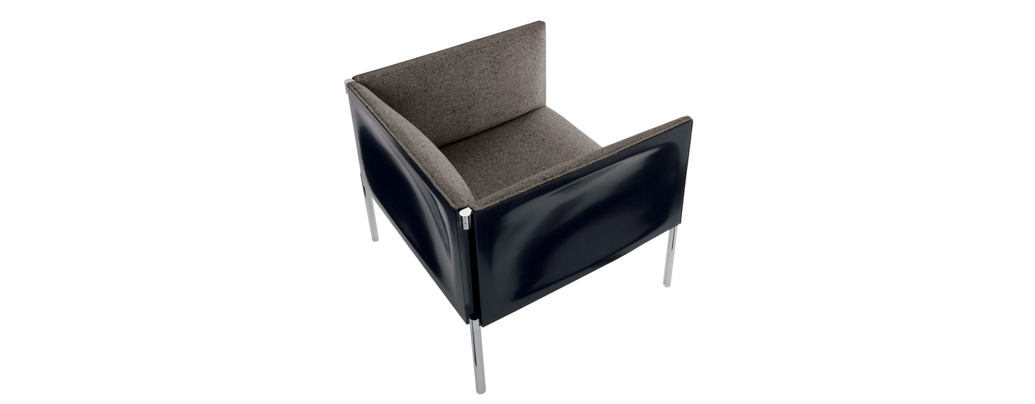 源自這個系統(tǒng)的各種類型包括一把扶手椅和一個有兩種尺寸的小型雙人沙發(fā),以及一個有兩種尺寸的小型三人沙發(fā)。這個項(xiàng)目是由一組大小不一、模塊化的面板打造而成。它們能夠通過鉸鏈組裝起來,成為靠背和扶手并支撐柔軟的座椅。整個有填充且?guī)в袃?nèi)襯的面板在外部呈現(xiàn)出一種凹陷的塑料表面,這讓各種元素在視覺上都消失了,更加凸顯了其輕盈的效果。