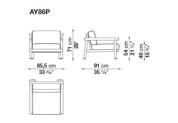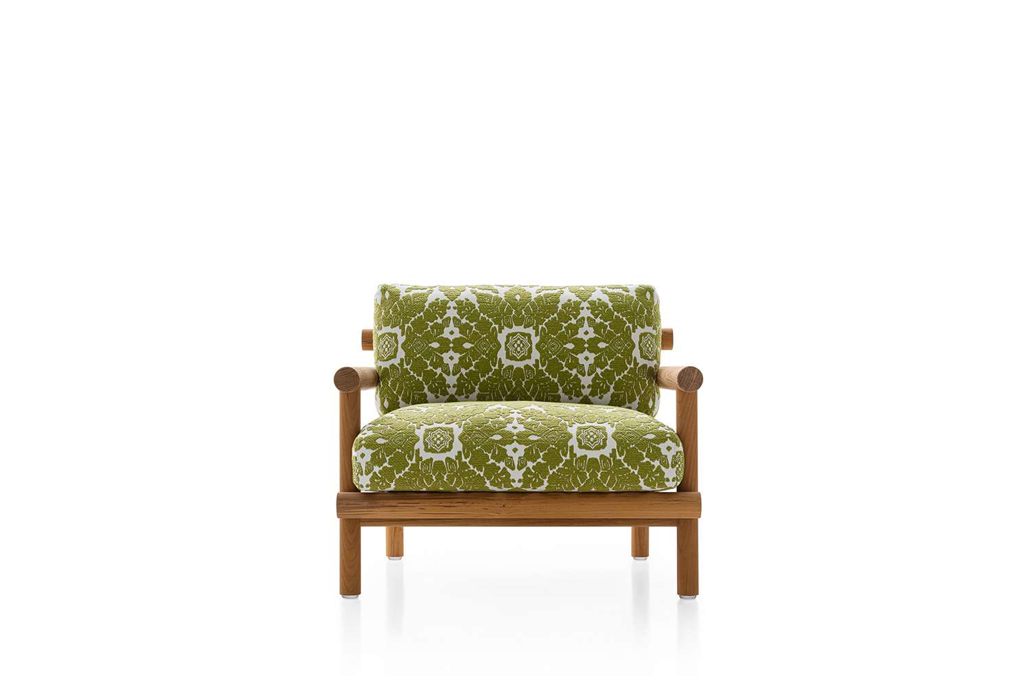 Minimalist and innovative, the Ayana collection becomes a new chapter in the story that connects B&B Italia to Naoto Fukasawa. It sees wood as the protagonist, interpreted in an unusual way, witha pleasant oriental touch. If the depths and heights are a clear reference to the south-east Asian tradition, the backrest recalls a Swedish wall bar, an exercise equipment turned into a load-bearing element. Thanks to this solution, the elements of the Ayana collection can be enjoyed and appreciated at 360 degrees, discovering on each side a new elegant interplay of intersections and proportions. Two and three seat sofas and the armchair have armrests at different heights. The armchair armrest is higher to guarantee a more ergonomic seat. The sofa armrest, which is lower, can be combined with a cushion that is easy to be fastened and removed, and helps to lie down more comfortably if necessary. The upholstery of this collection stands out for the individual cushions, all covered with waterproof fabrics.