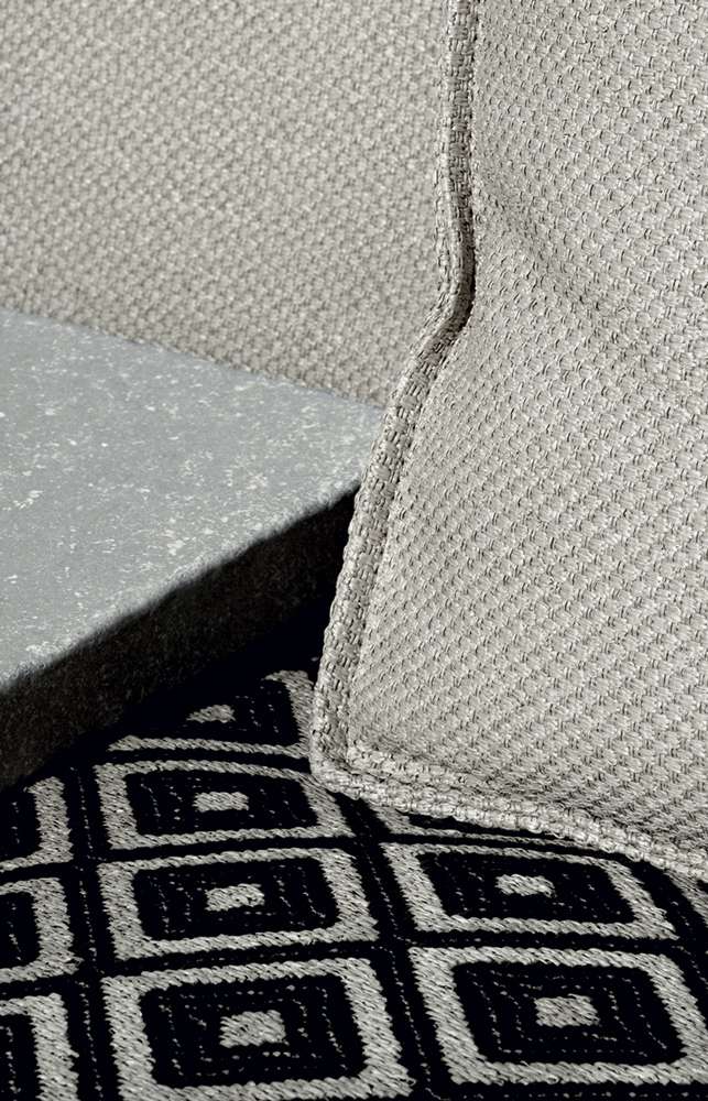 The very first collaboration between B&B Italia and Philippe Starck leads to the birth of a sofa and an armchair, both with impressive dimensions and a highly scenographic presence, that surprisingly combine an unusual shape and an unexpected function, with a name that really attracts attention. Oh, it rains! is a piece of considerable impact, destined to last over time and to be talked about, but also to be used in the most unexpected ways and contexts. Philippe Starck started his research for this project by going back to the origins of outdoor furniture, that of nomads and soldiers: desert tents and field equipment, colonial colors and very light materials, essential shapes with functions connected with rapid action. We notice Oh, it rains! right away for its large backrest. It isn’t a simple decorative element, though. It acts like a wall or a partition to create an intimate and private setting, and, when necessary, it folds down on top of the seat and - voilà - the seat and cushions are covered and protected. Colours and materials go hand in hand with the initial concept and the collection introduces colonial shades and raffia-effect waterproof fabrics.