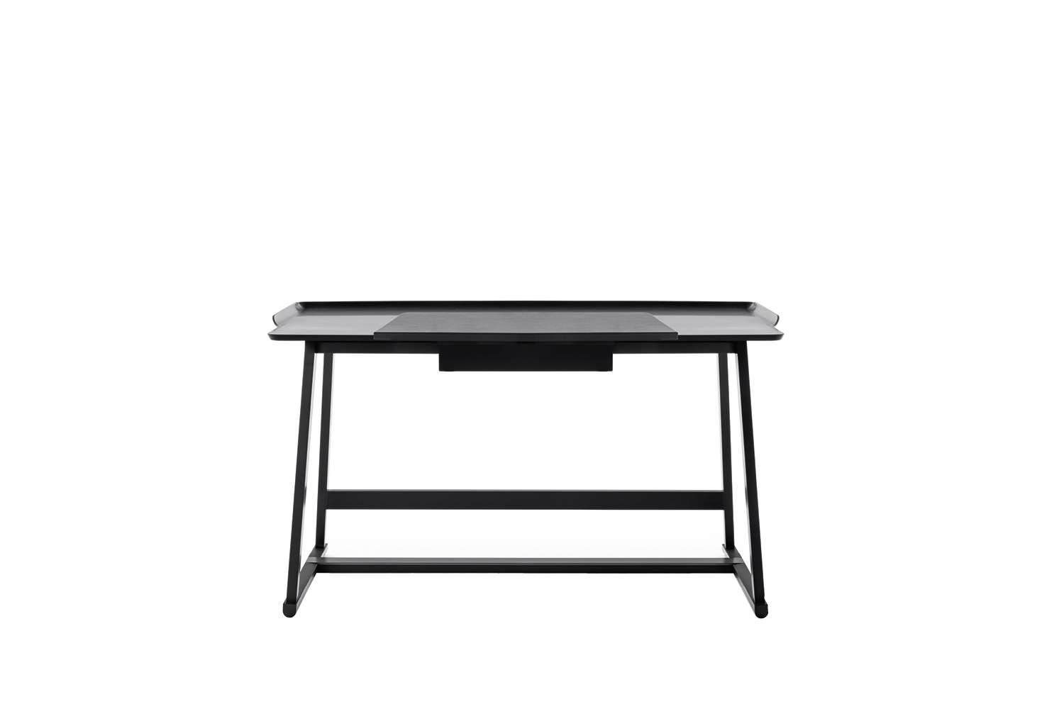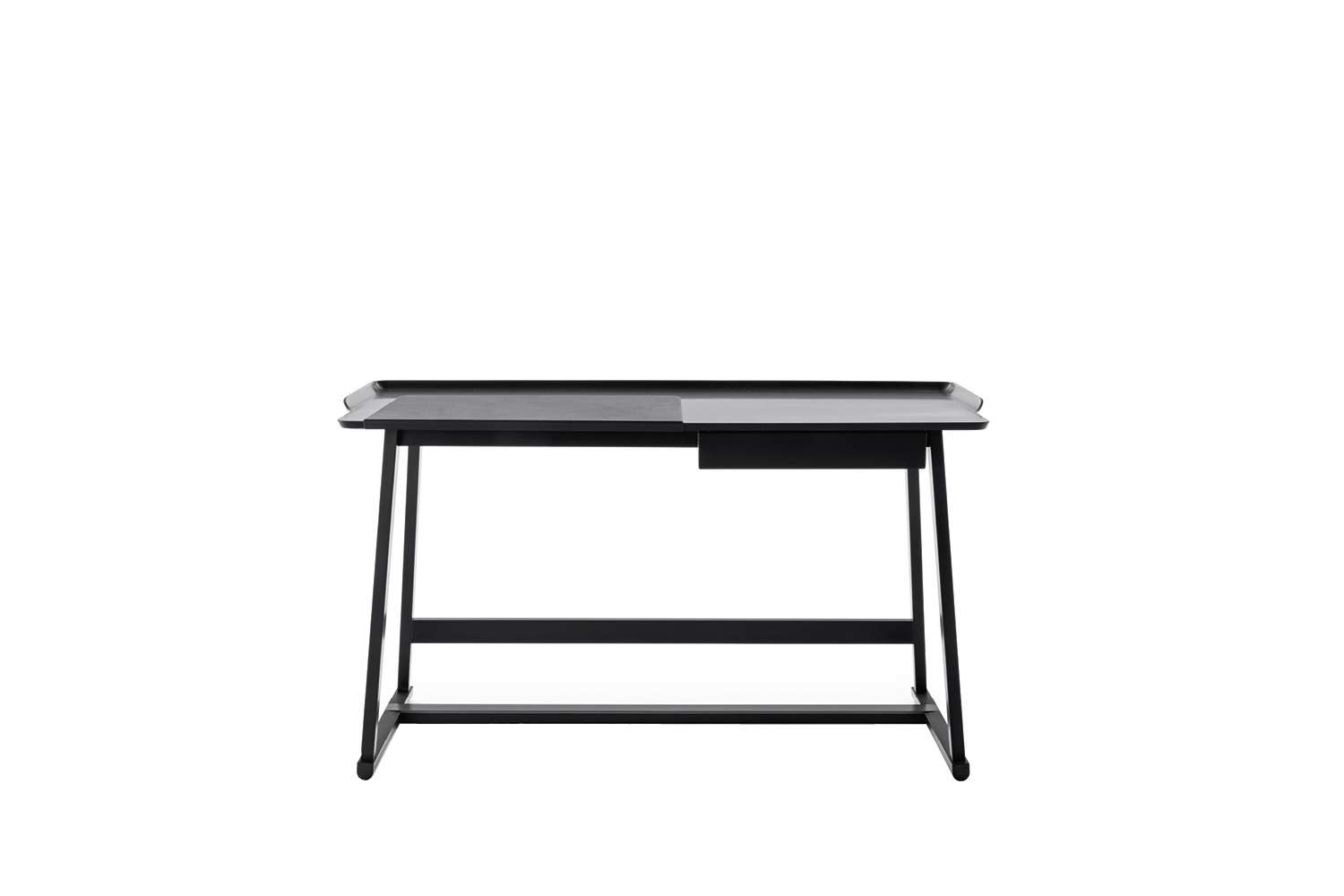 Recipio, born of an element designed to act as a bedside table, today the collection includes a console, a series of round and rectangular multipurpose tables, a writing-desk with a drawer and a dining table in two sizes available in grey oak, brushed light oak or brushed black oak. All elements have a tub-shaped top that resembles a curved tray. Recipio is available in the shellac finish in black, red and soia.