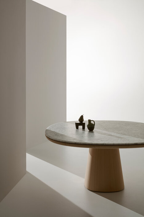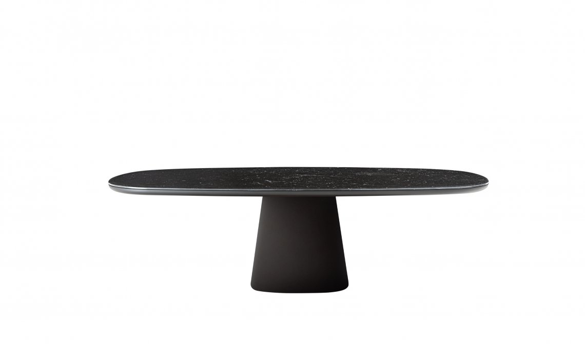 The Allure O’ table is presented as a heart-felt tribute to glamour interpreted in contemporary style. The graceful force of its design is clearly seen in the shape of the top and the balance between the control of straight lines and sinuosity of curves. In an interplay of elliptical geometric shapes that recalls the Madison mirror, designed by Monica Armani in 2017, this piece renews the reference of the shape of Jackie O’s iconic eyeglasses. Allure O’ is available with a square or rectangular top, both with bevelled edges, and each comes in two sizes to seat four, six, or even eight people. The section of the truncated pyramid base replicates the rigorous balance of the top with delicate proportions to create a level of harmony that can guarantee structural and visual stability. The finishes underscore the sophisticated elegance of the inspiring concept behind it. These pieces are available in glossy and matte painted finishes in many colours, and also in light and black oak wood. The top and base can also be finished in combinations of different colours. Furthermore, the table Allure O' can be enhanced with an upper marble top or with sophisticated glossy black glass.
