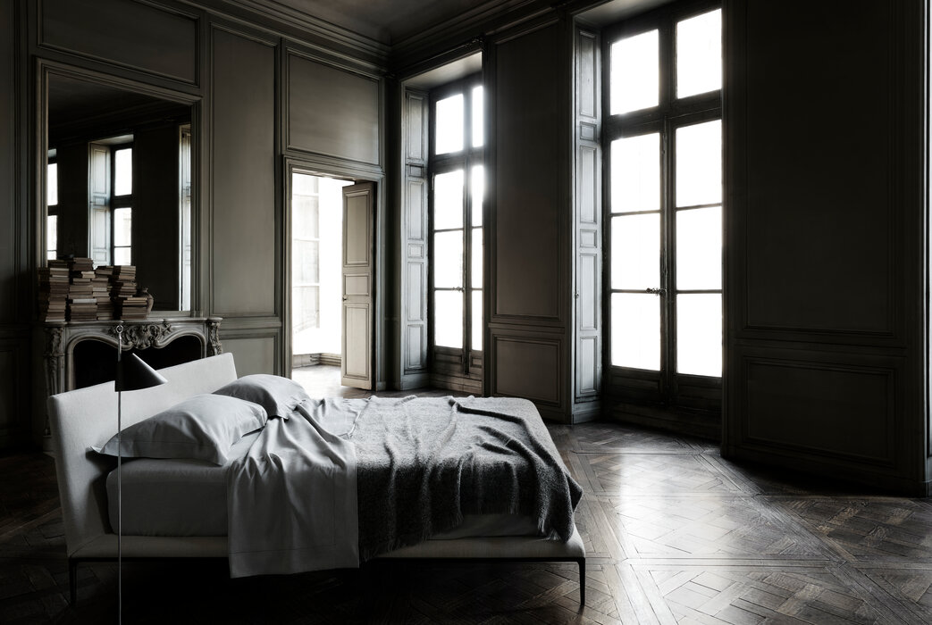 The B&B Atoll collection is continuously being expanded and updated, and has now been extended with the addition of a new bed. This latest piece of furniture reflects the stylistic elements of the B&B Atoll sofas, united as they are by the same exceptional elegance, clean, understated lines, and rigorous proportions, as well as by the die-cast aluminium legs set at each corner, now a staple of contemporary furniture. As with the entire B&B Atoll range, the bed can be covered in leather or fabric.
