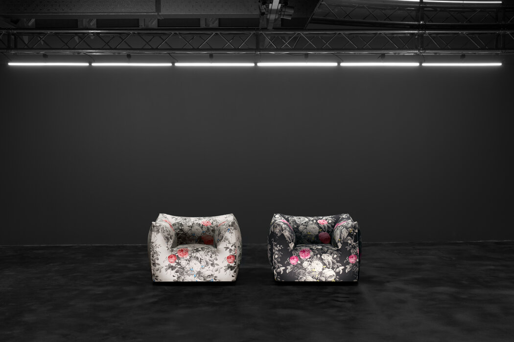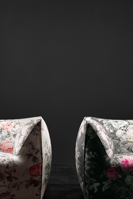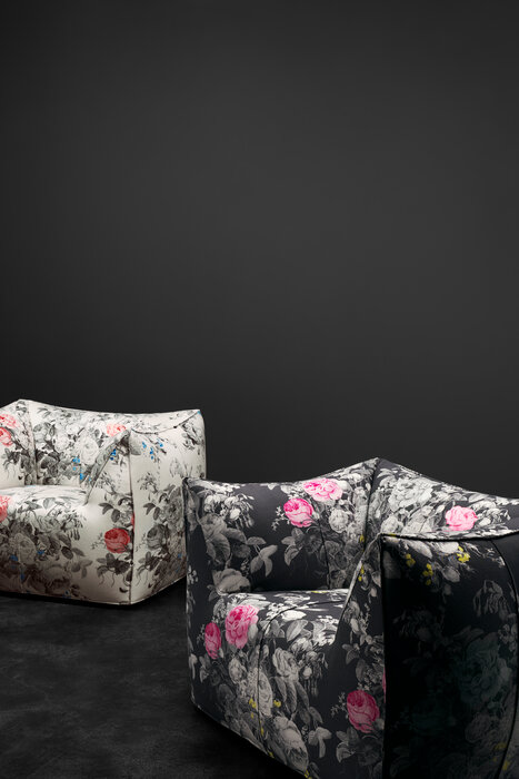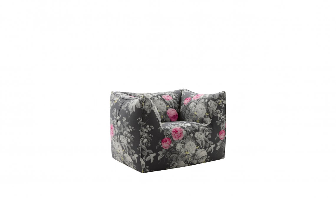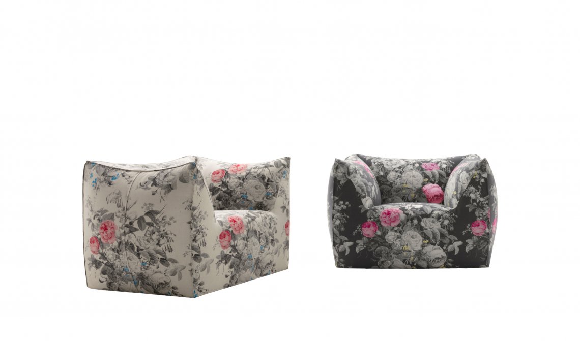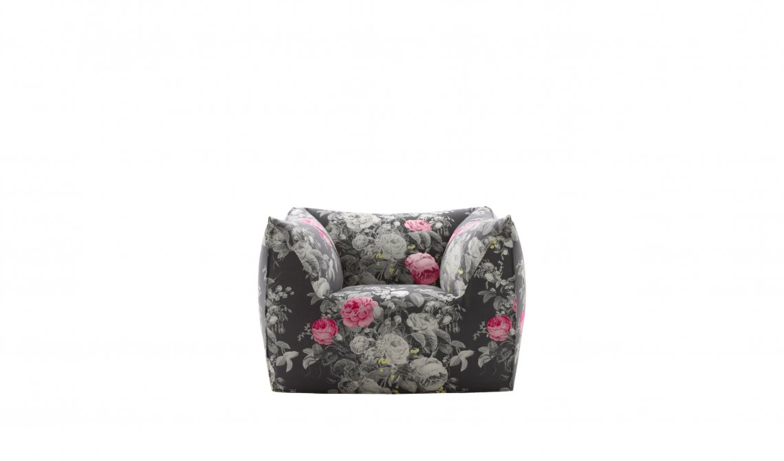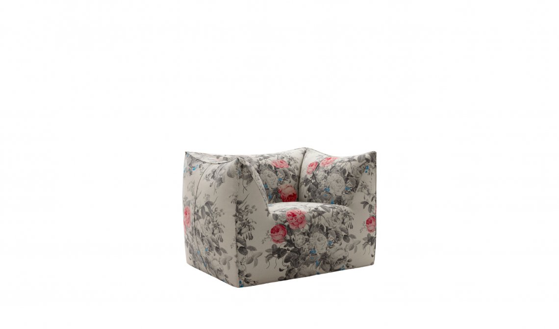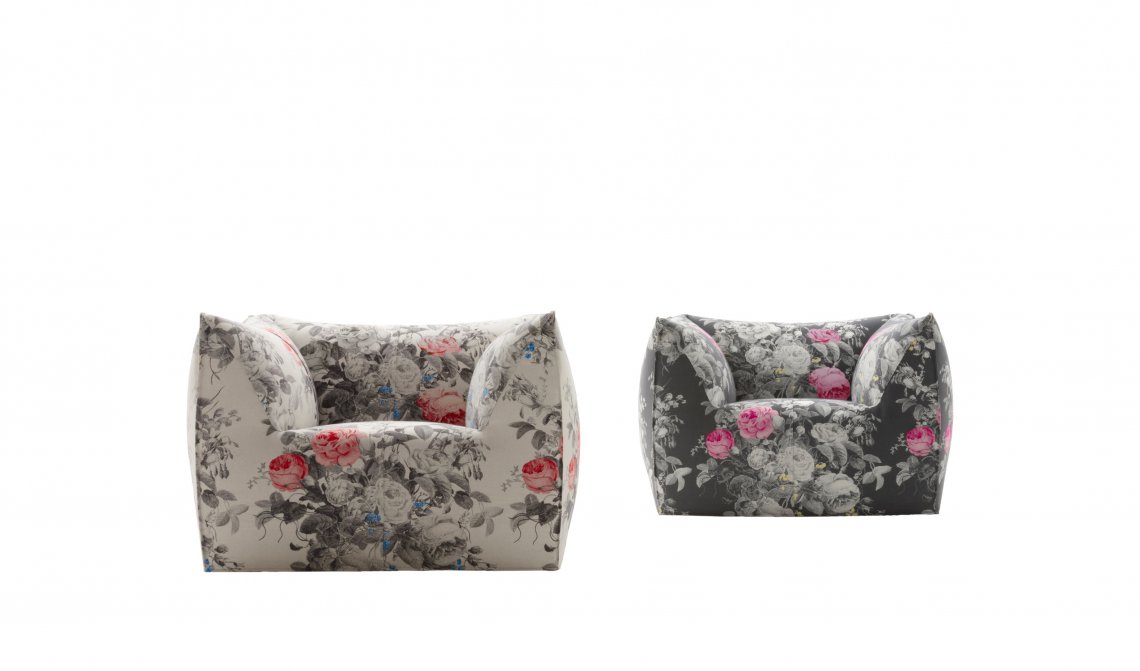 The version of the Bambola armchair in Manila fabric can be ordered exclusively through the Direct to Consumer channels (e-Commerce, Monobrand and Flagship Stores).