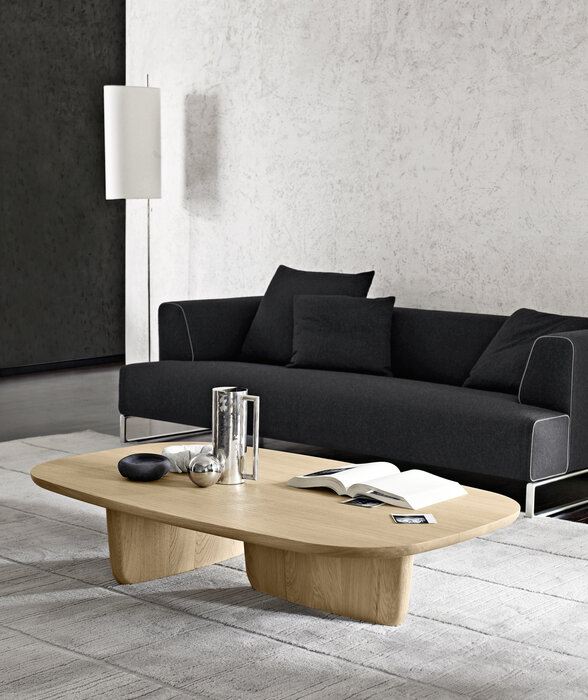 Tobi-Ishi is a sculptural low table echoing the explicit Zen inspiration of the iconic dining table of the same series. The name itself is a reference to the polished stones (tobi-ishi) used ornamentally in traditional Japanese gardens. It is available in wood, marble or matt and glossy lacquering in a wide range of colours.