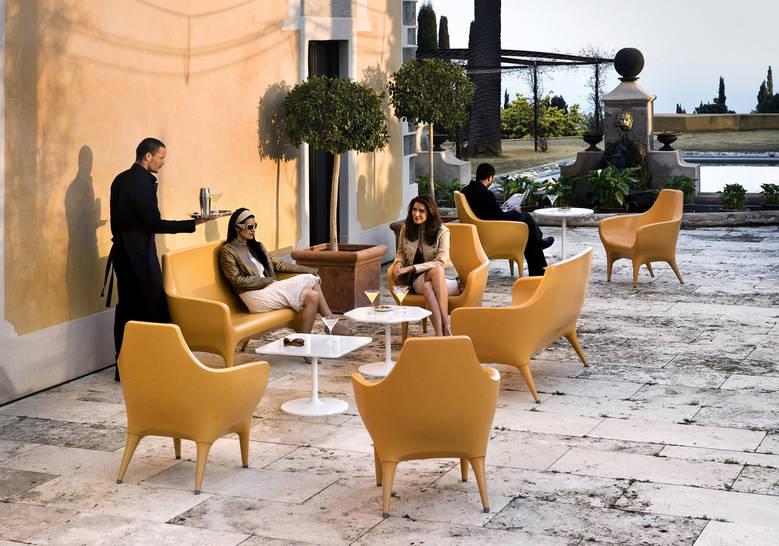 Sillón, sofá y capota fabricadas en una sola pieza en polietileno de media densidad (MDPE) rotomoldeado.