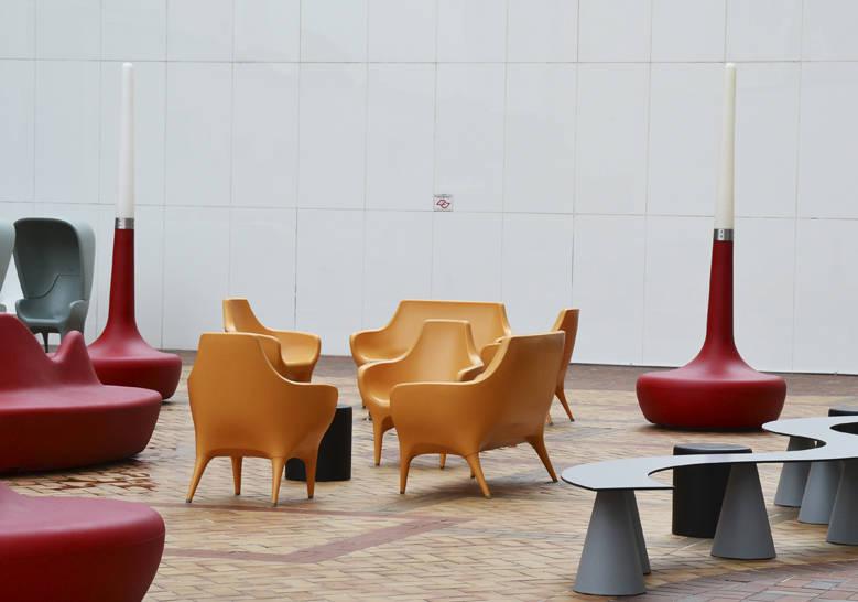 Poltrona, sofá y poltrona con cover en polietileno rotomodelado con el inconfundible sello de Jaime