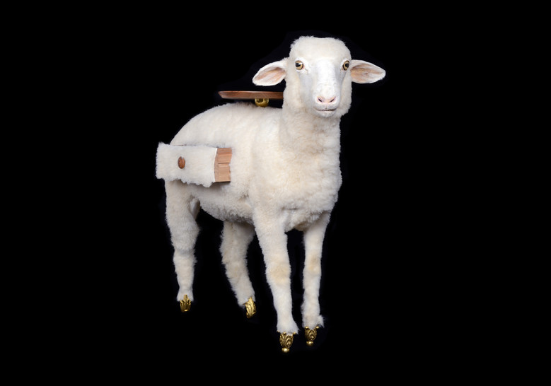 pintura “Proyecto de interpretación para un establo-biblioteca” (1942) donde aparece una mesita-oveja