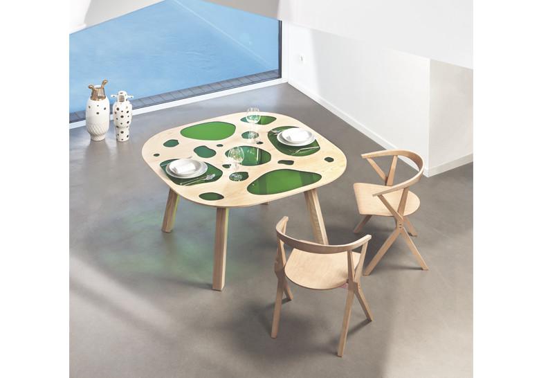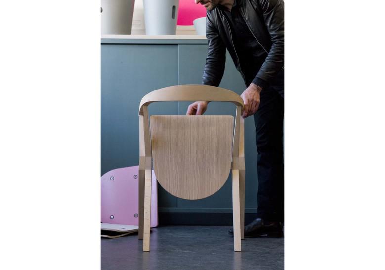 Laterales y asiento en madera contrachapada con caras exteriores en fresno y respaldo en madera maciza de