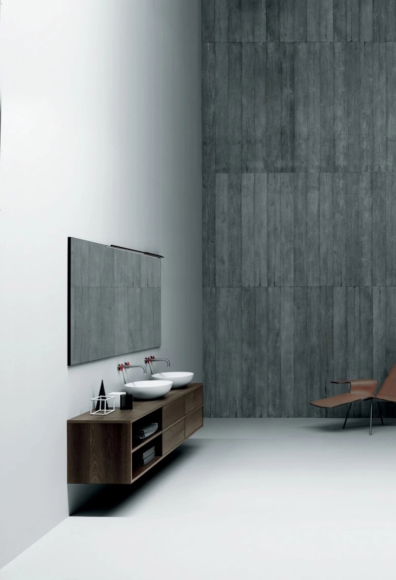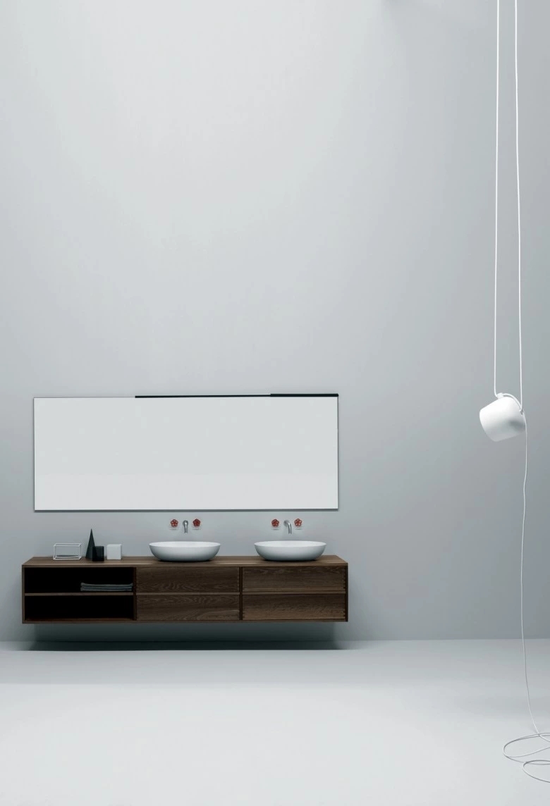 Horizontal suspension lamp made of extruded aluminium profile with LED strip diffuser and protective polycarbonate screen. The steel cables for ceiling suspension reach a maximum length of 2500 mm. It is available in three different lengths and two finishes: black painted or white painted. The lighting is controlled through a touch-sensitive control with dimmer or through a remote switch. The Giò Wall version is available in seven different lengths, with remote switch only. Design C.R.S. Boffi.