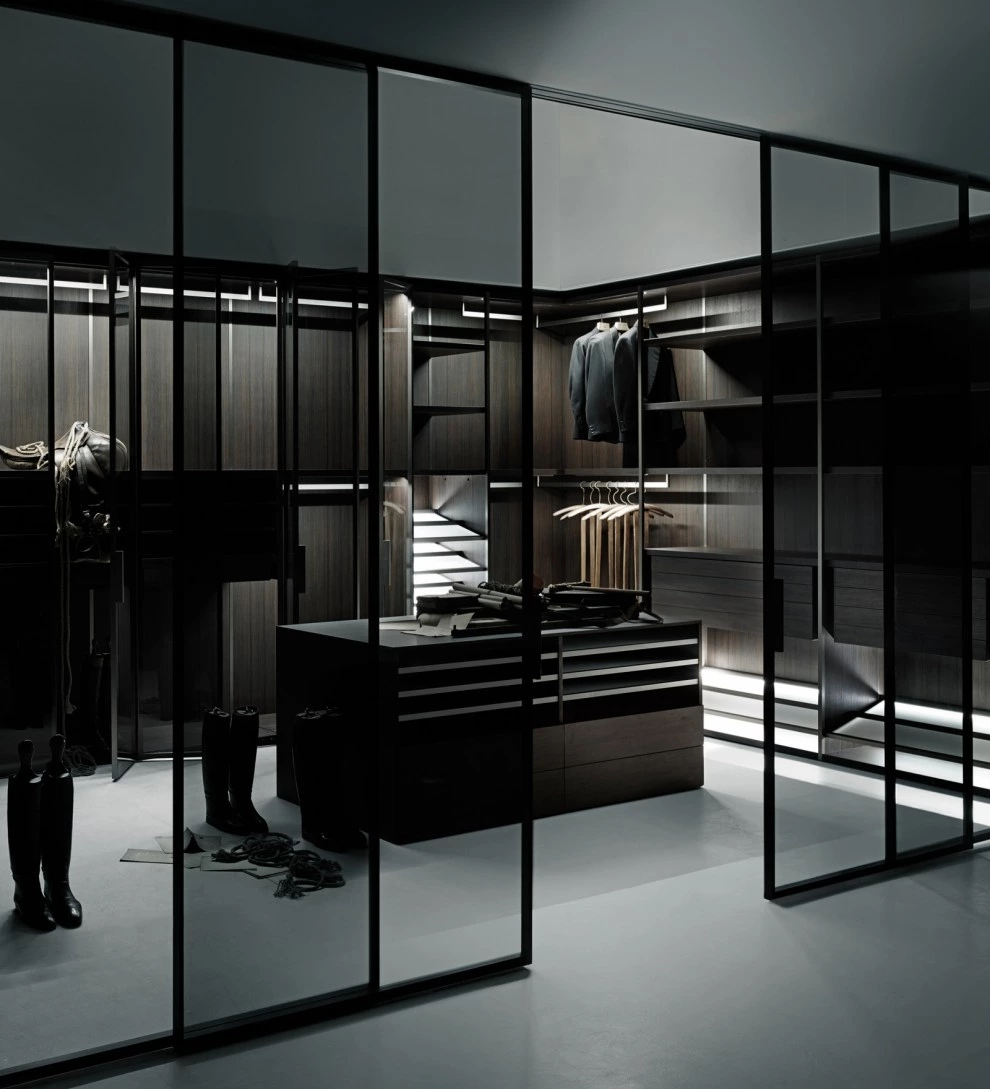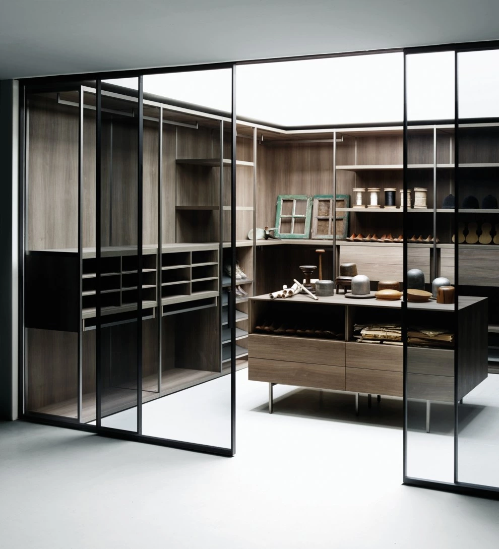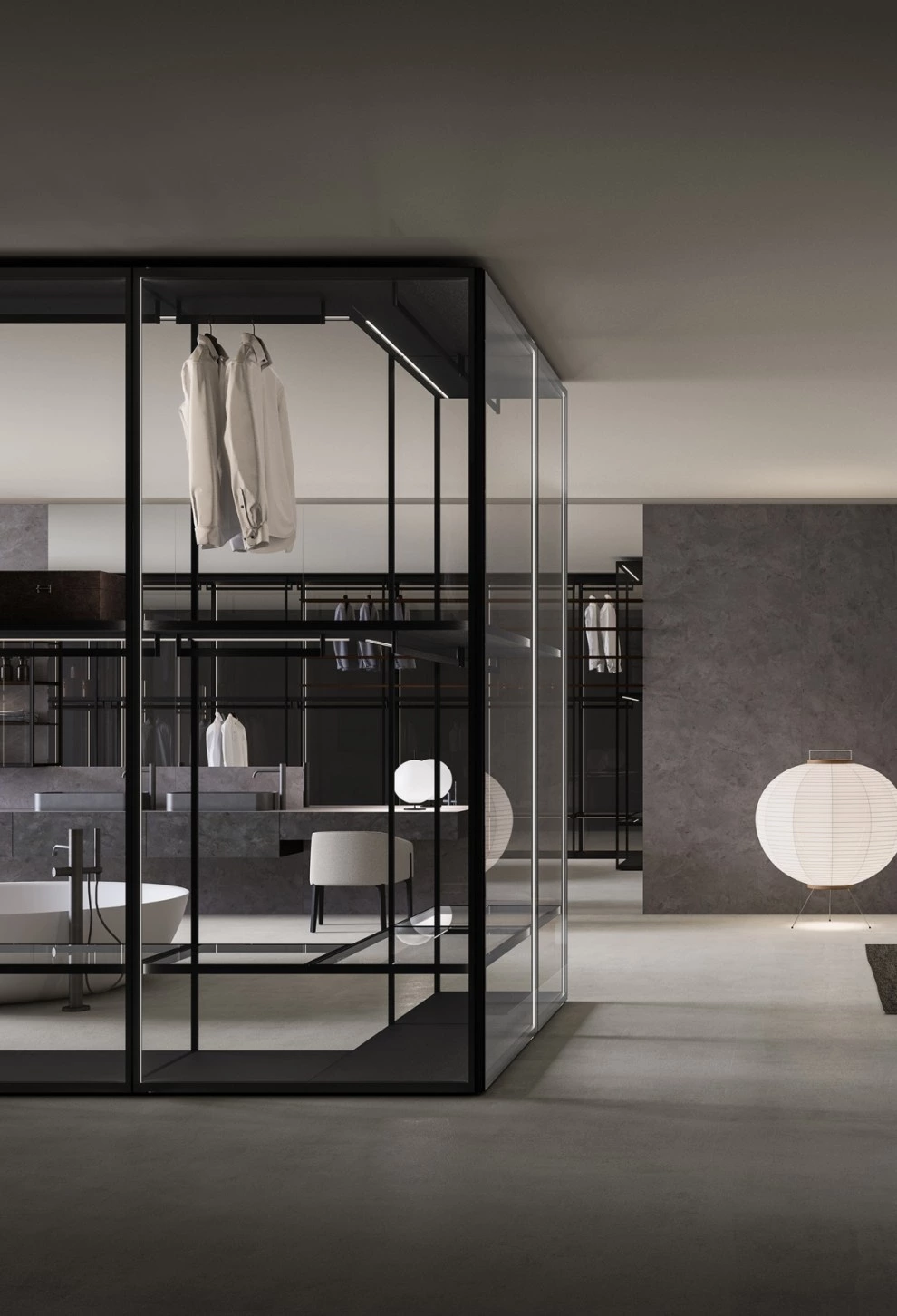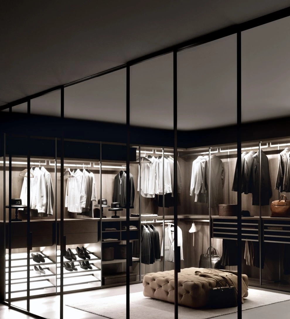 The Antibes walk-in closet is highly customized: from thhe modular subdivision to the choice of shelves, drawers and trays. All this enhanced by the quality of both finishes and materials.