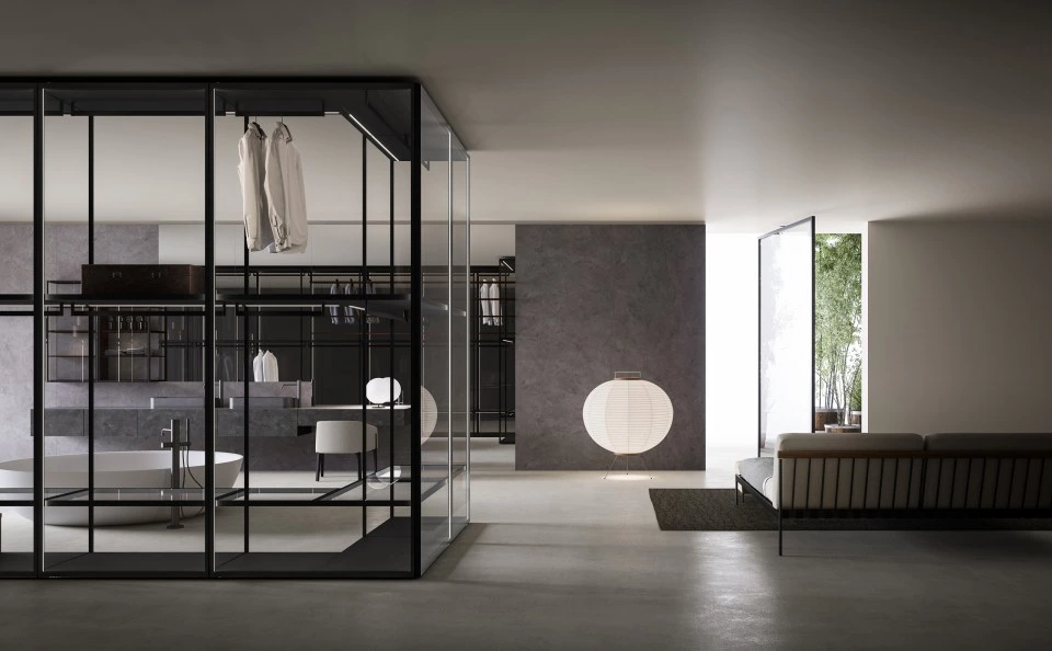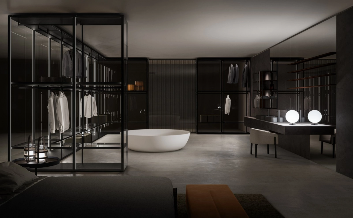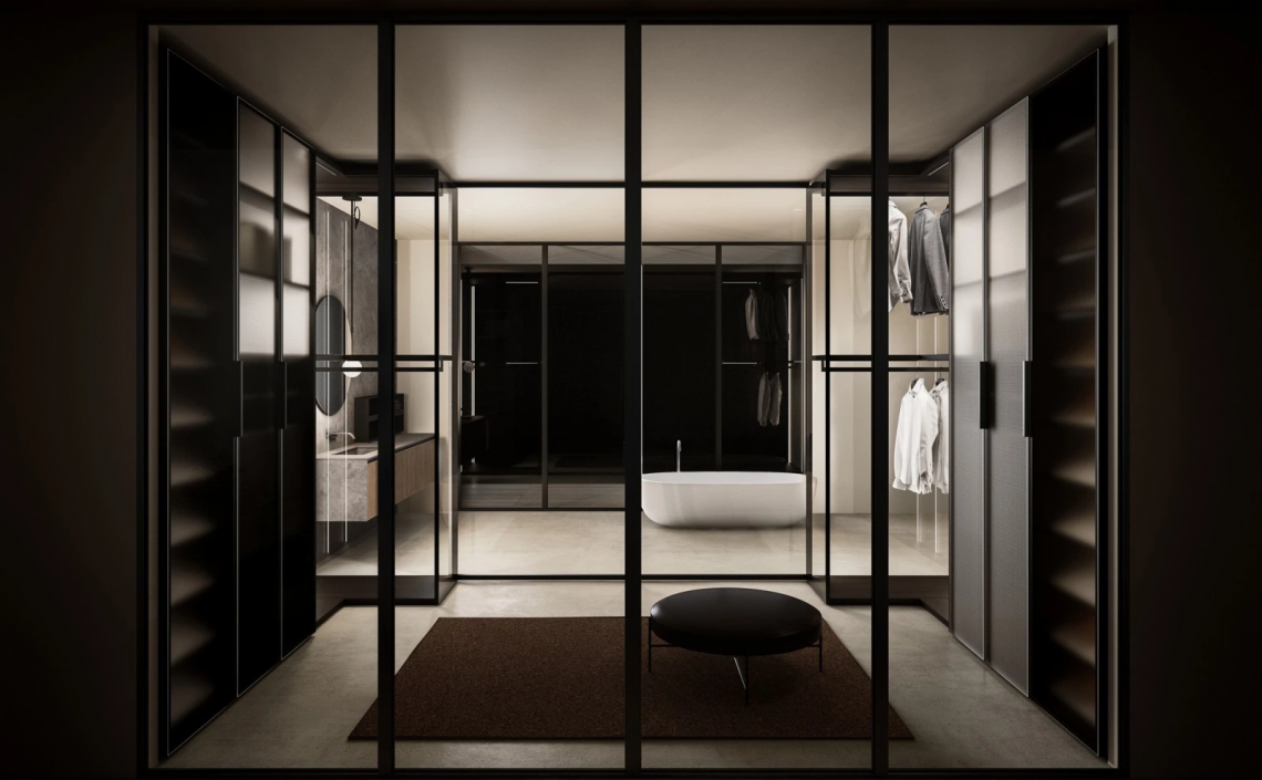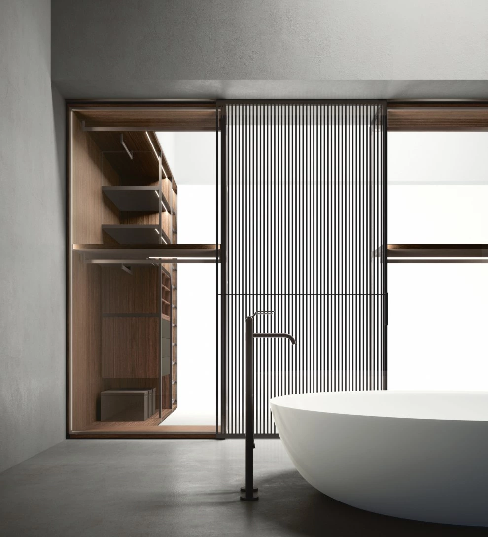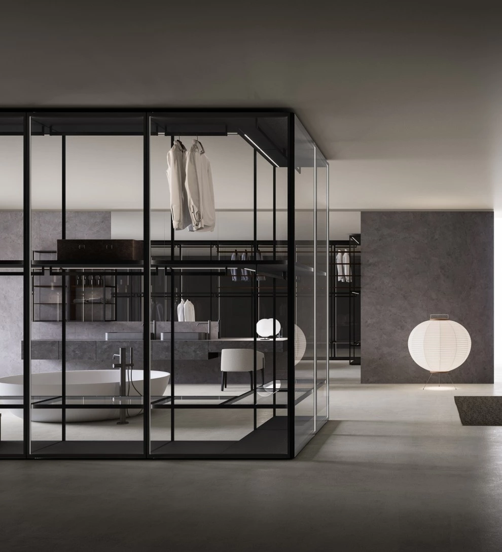 The Antibes walk-in closet is highly customized: from thhe modular subdivision to the choice of shelves, drawers and trays. All this enhanced by the quality of both finishes and materials.
