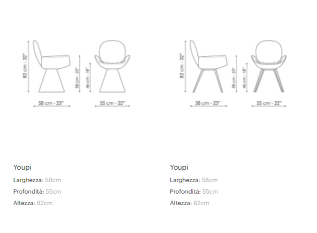interamente: lo schienale circolare confluisce nell’ampia sedutae il tutto è sorretto da una base cilindrica e svasata. Youpi èdisponibile anche nella versione con quattro gambe metalliche.