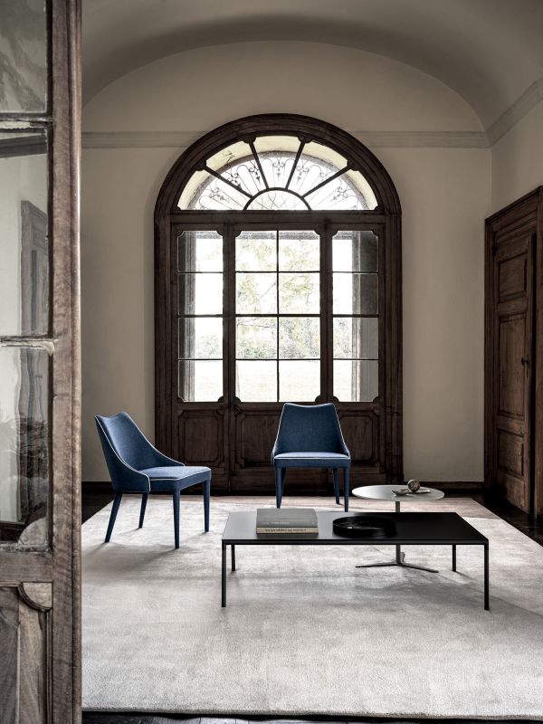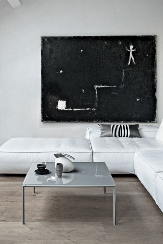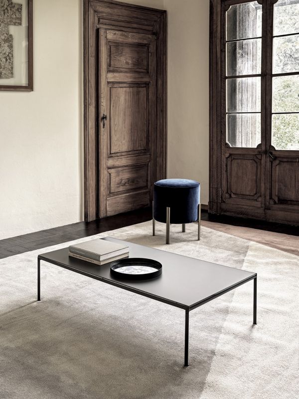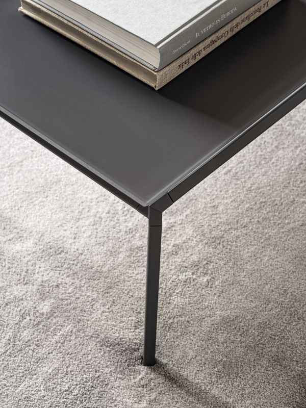 Coffee table with lacquered Metal frame, top in glossy Glass or velvet matt Anti-scratch Glass.