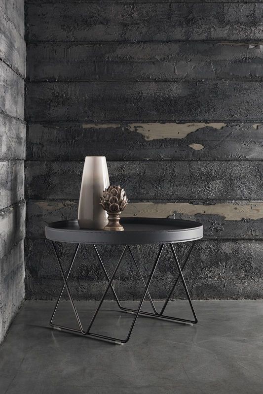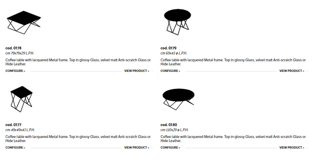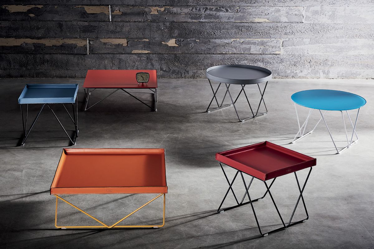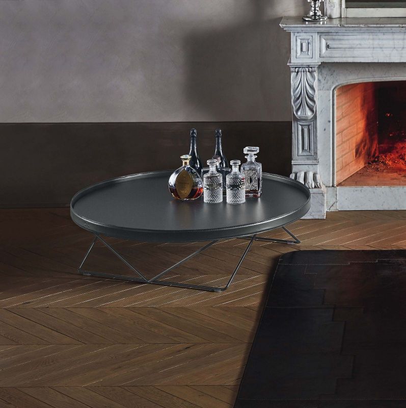Coffee table with lacquered Metal frame. Top in glossy Glass, velvet matt Anti-scratch Glass or Hide Leather.