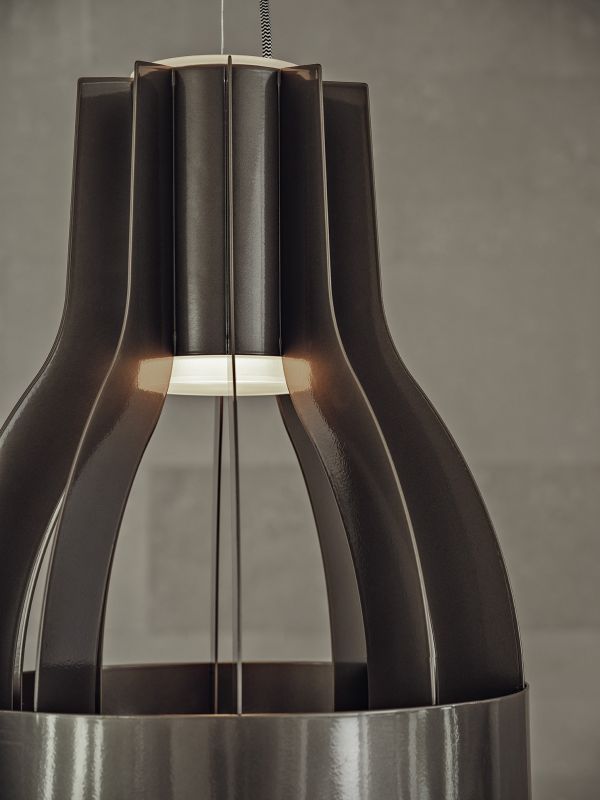 Ceiling light with black ceiling rose and lacquered structure.