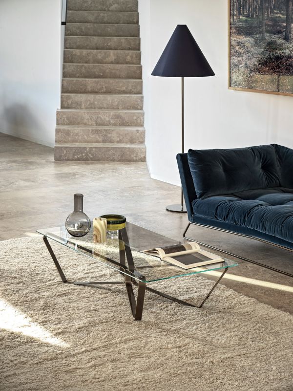 Program of ceiling lamps and floor lamps with metal lacquered frame and fabric lampshade.
