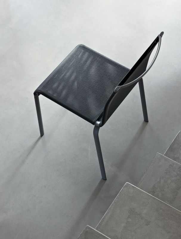 Outdoor stackable Chair/Chair with arms with lacquered metal frame, shell in texplast or soft texplast.
