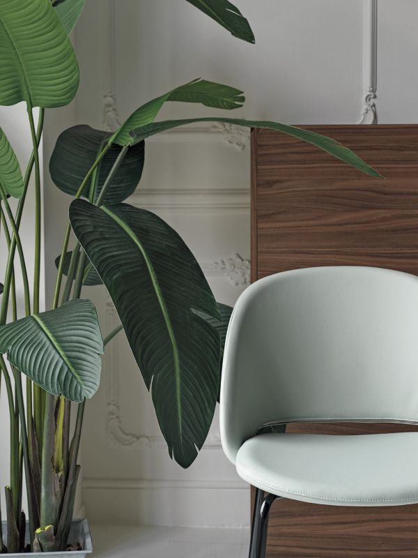 Low barstool with metal frame, seat and back upholstered and covered in Eco Leather, Technical velvet, Mambo and Lulù fabric, Waterproof Nabuk, Waterproof printed Nabuk, Pure Virgin Wool, Velvet, Decò fabric, Kvadrat Field fabric, Coda Fabric and Premium Leather.