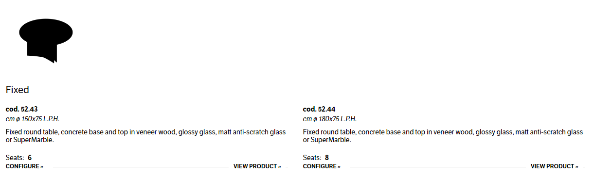 Fixed round table, concrete base and top in veneer wood, glossy glass, matt anti-scratch glass or SuperMarble.