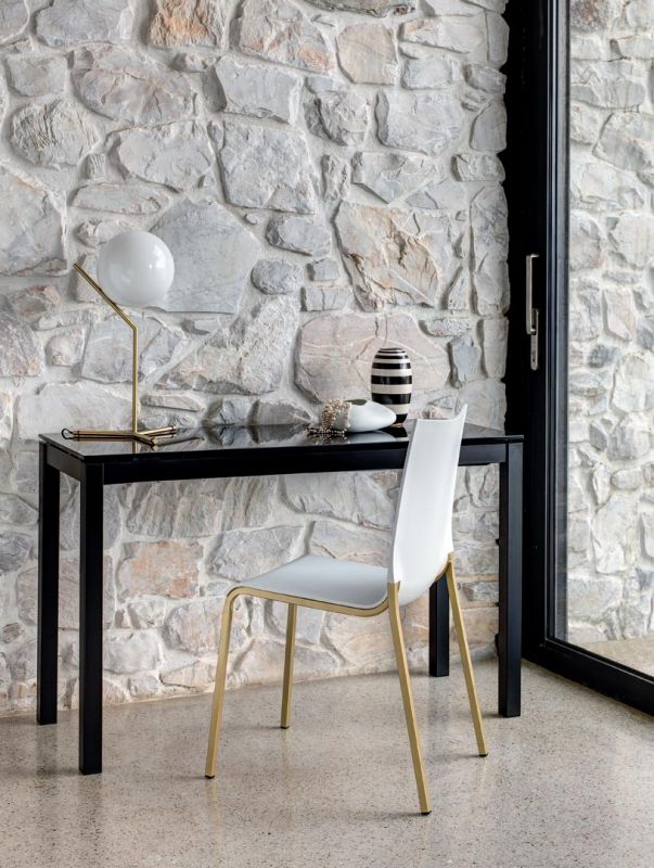 Console table with extension and lacquered Metal frame. Top in glossy Glass or velvet matt Anti-scratch Glass.