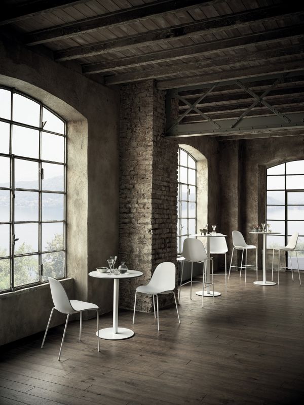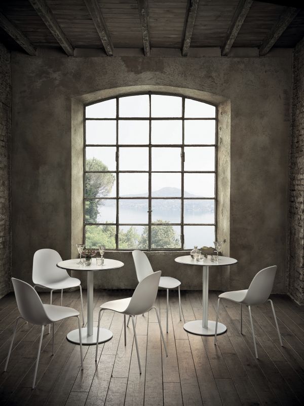 Bases in aluminium for indoor, stainless steel for outdoor and tops in laminate, alucompact or melamine.