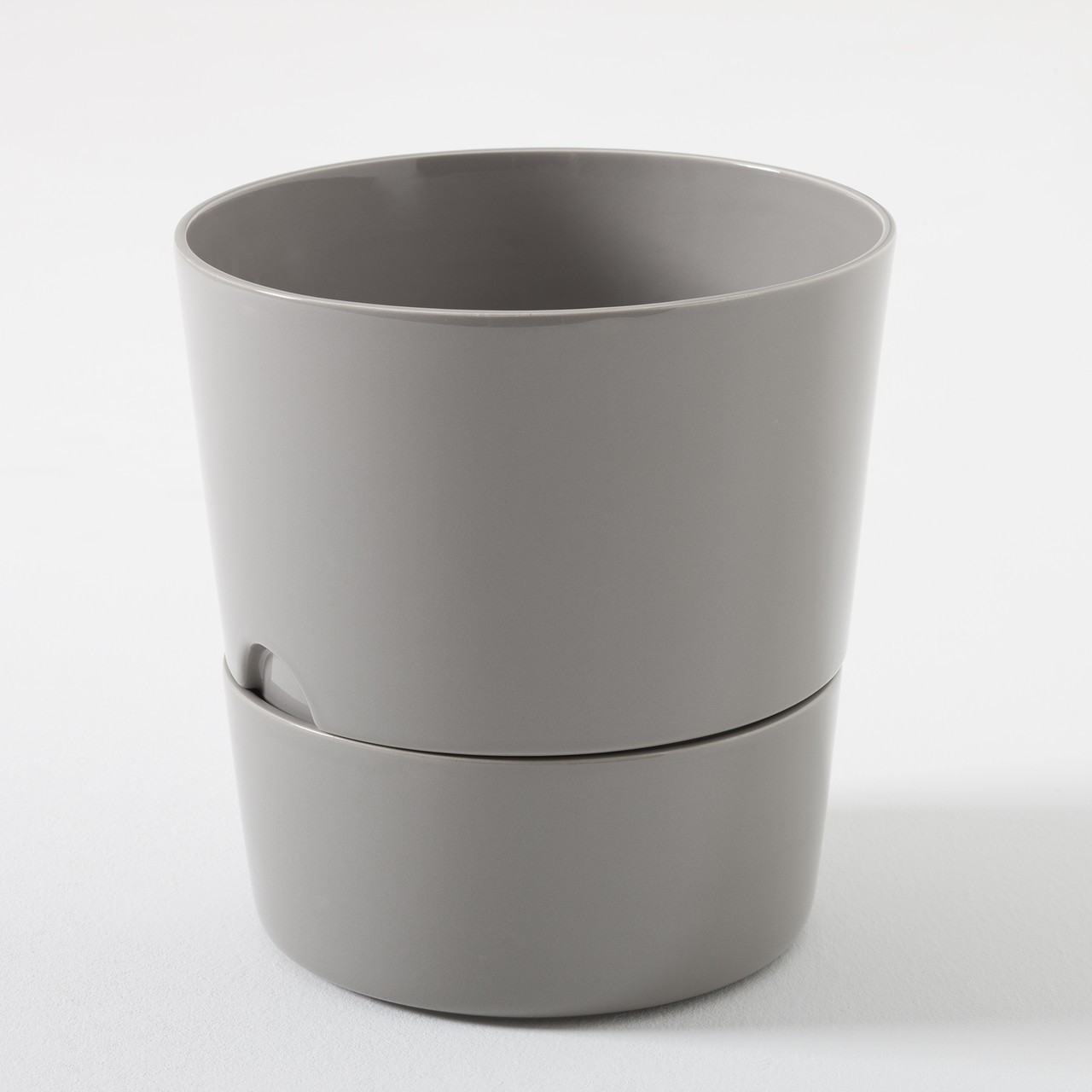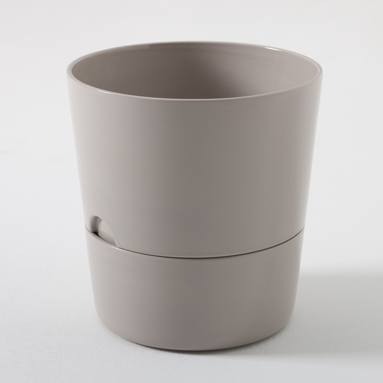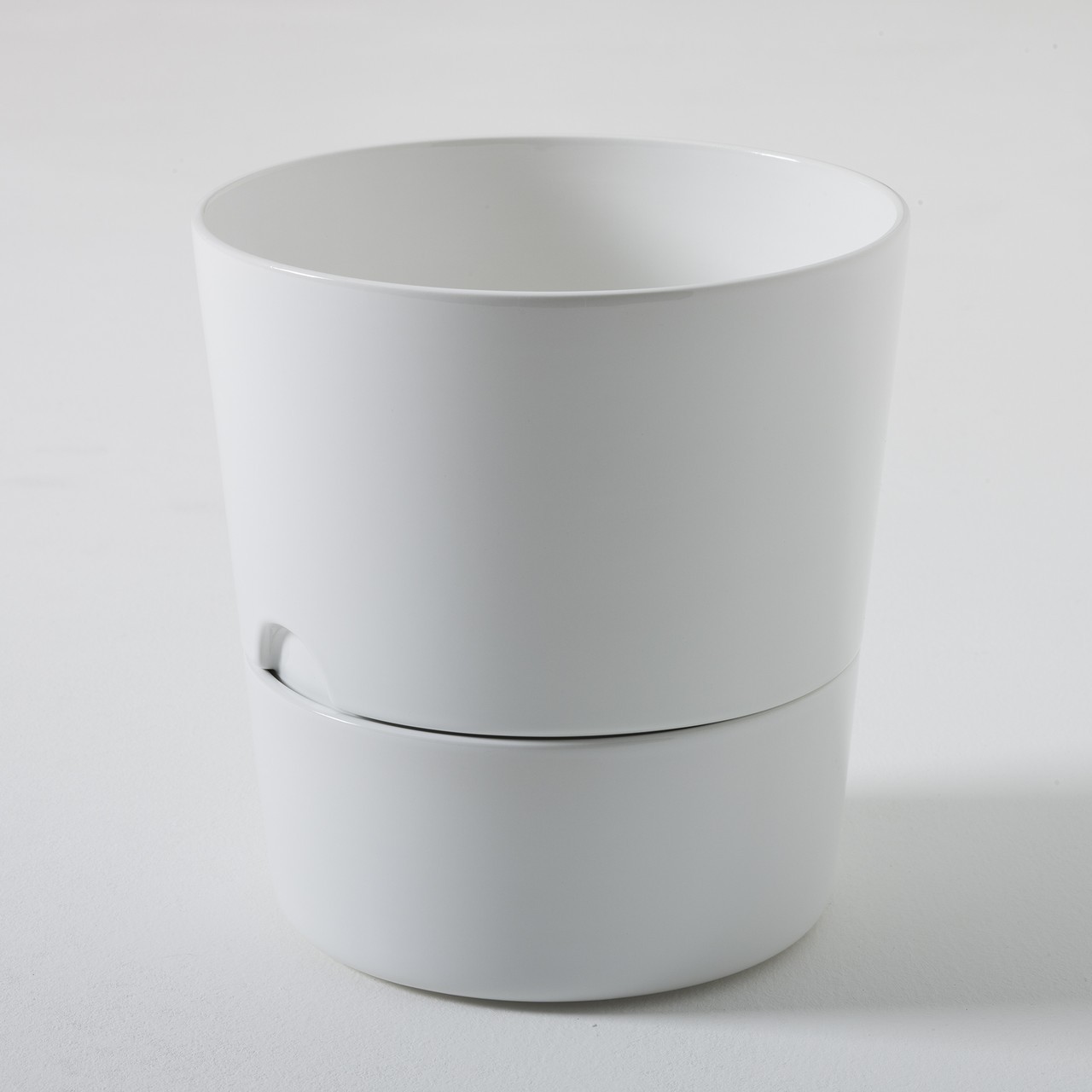 Pot è un insolito copri vaso in ceramica, che oltre ad avvolgere la base, è studiato per dare la giusta quantità d'acqua alla pianta. Il liquido in eccesso viene raccolto nel contenitore inferiore da cui le radici attingono l'acqua. Discreto nella forma, delicato nei colori, Pot si inserisce in modo elegante in qualsiasi ambiente.