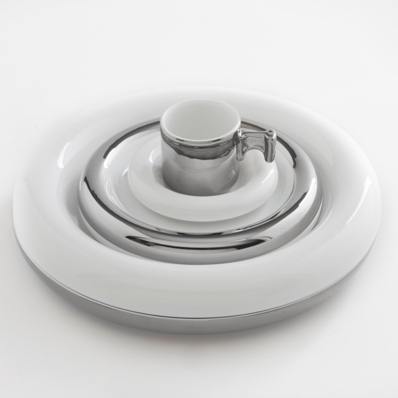 Salvagente un set completo di piatti con tazzina raccolti in un unico volume compatto. Ideato da Riccardo Schweizer negli anni '70 , Salvagente ha una forma morbida e giocosa, ma allo stesso tempo è pratico e funzionale. I piatti sovrapposti diventano un contenitore, un prezioso scrigno, ma scomponendoli uno ad uno, avremo ogni volta la sensazione di scoprire una piacevole sorpresa. Un modo unico e originale di preparare la tavola.