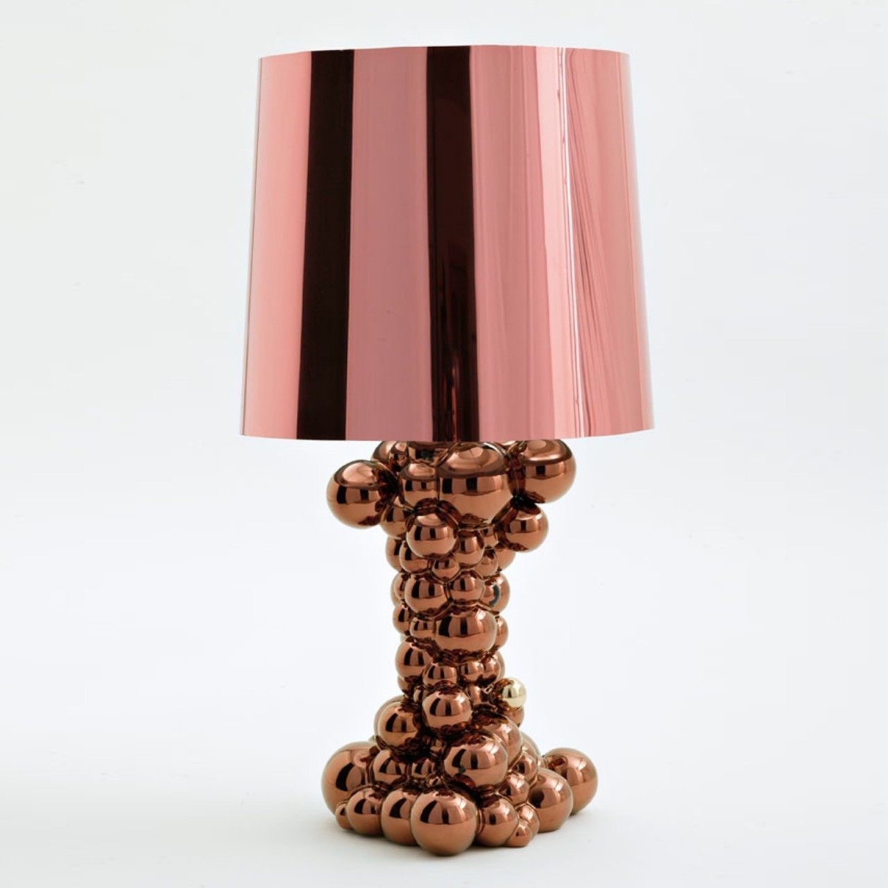 Bubbles Lamp ricorda l'effetto effervescente di tante bolle. La materia che si trasforma nell'attimo del tocco e il corpo che prende luce. Per rendere possibile l'aspetto tridimensionale e cogliere l'intento del designer, le palline di Bubbles vengono sapientemente assemblate manualmente una ad una. Questa difficoltà di realizzazione rende questo oggetto unico e prezioso.